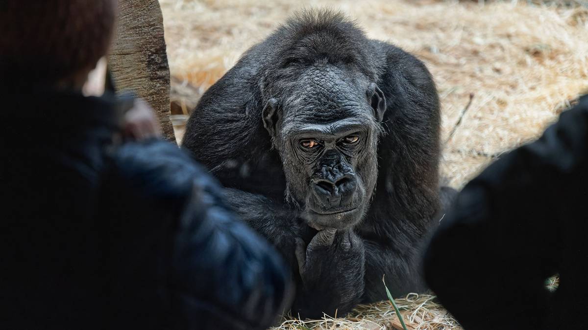 A jaký bude rok, který je právě před námi? Doufejme, že se na jeho konci nebudeme tvářit jako samice Duni na tomto snímku z nového pavilonu goril v pražské zoo (prosinec 2022).