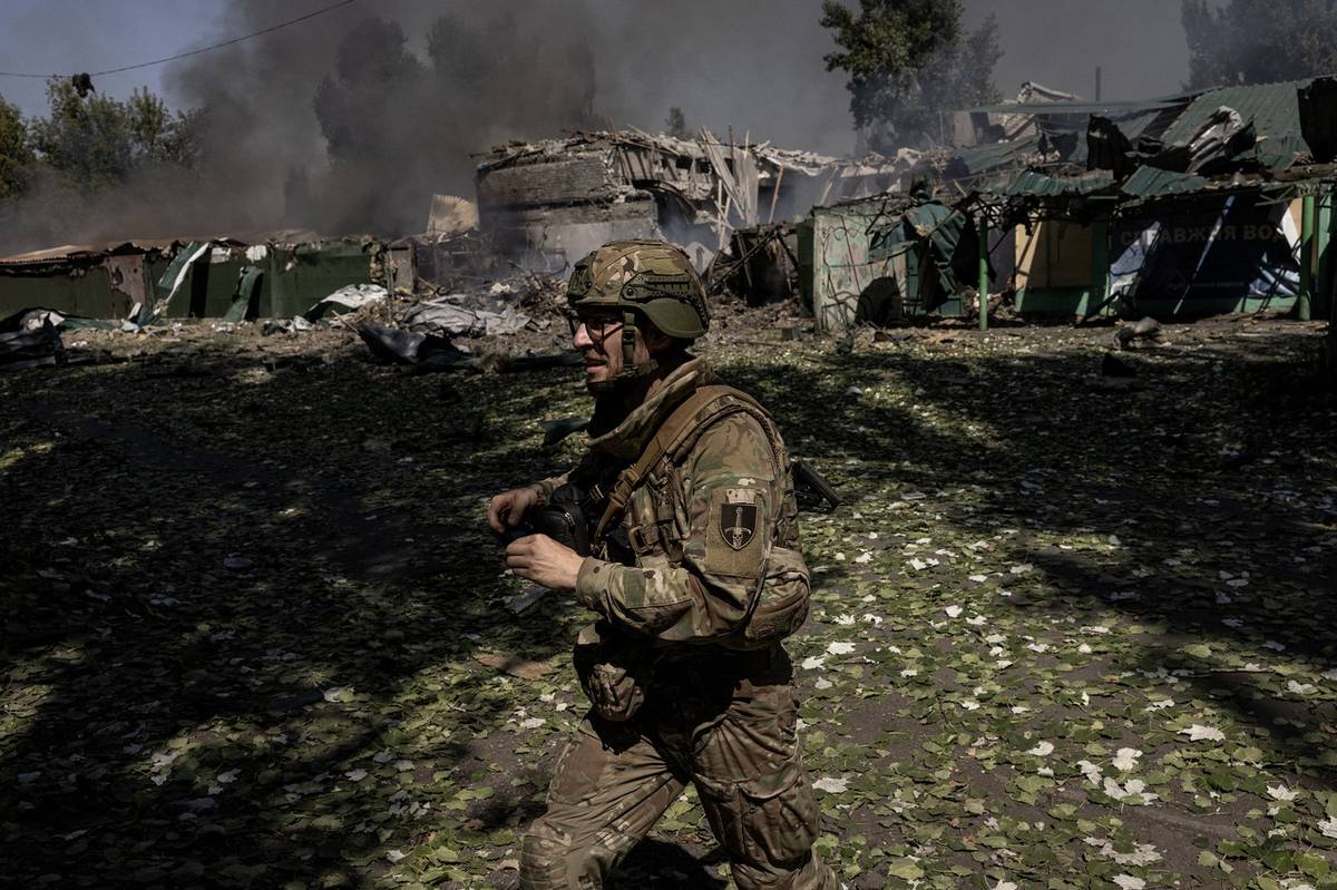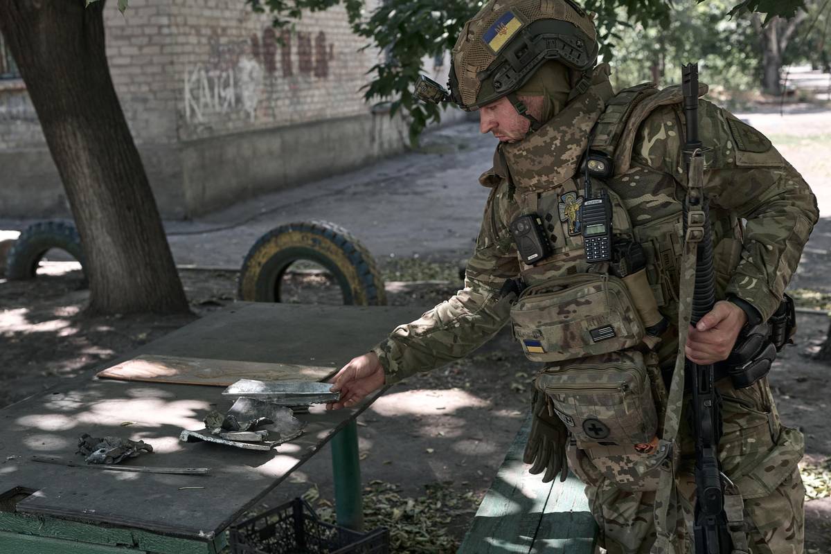 Voják si prohlíží osobní věci, které ve spěchu zanechala žena ve svém domově v Dobropillji. Ten trvale opustila 19. srpna 2025, kvůli zhoršující se bezpečnostní situaci v oblasti.