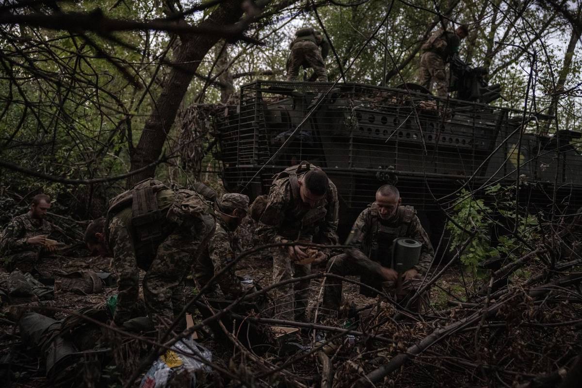 Kolem města Dobropillja na pokrovském úseku fronty došlo minulý týden k nezvykle hlubokému průniku ruských jednotek do ukrajinské obrany. Na mapě měl tento průnik podobu zaječích uší, a tak tomu Ukrajinci také říkali. Na snímku se ukrajinští obránci připravují na protiúder.
