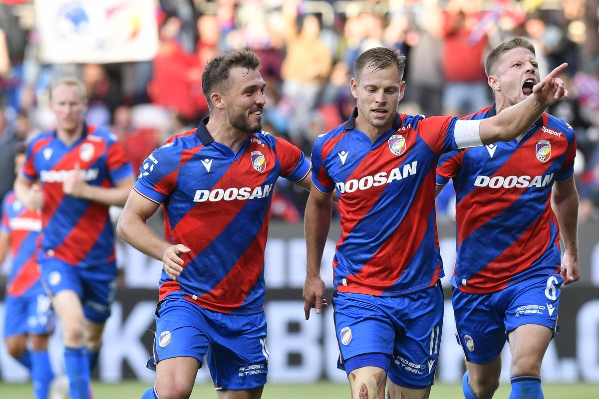 Utkání 6. kola první fotbalové ligy: Viktoria Plzeň - MFK Karviná, domácí se radují z vedoucí branky.