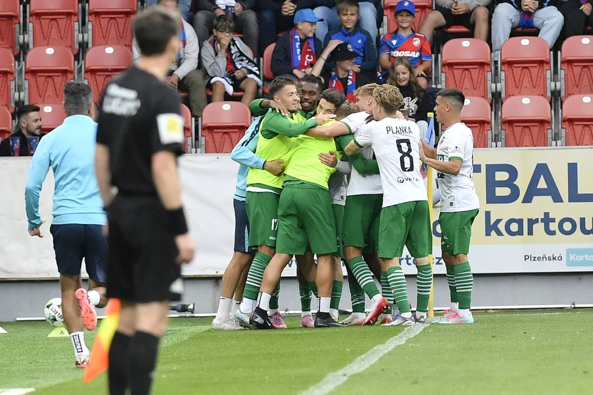 6. kolo první fotbalové ligy: Viktoria Plzeň - MFK Karviná, hosté slaví vyrovnávací gól.