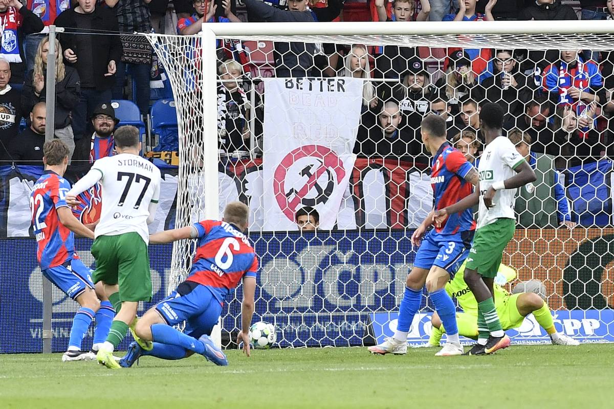 6. kolo první fotbalové ligy: Viktoria Plzeň - MFK Karviná, Rok Štorman právě vyrovnává na 1:1.