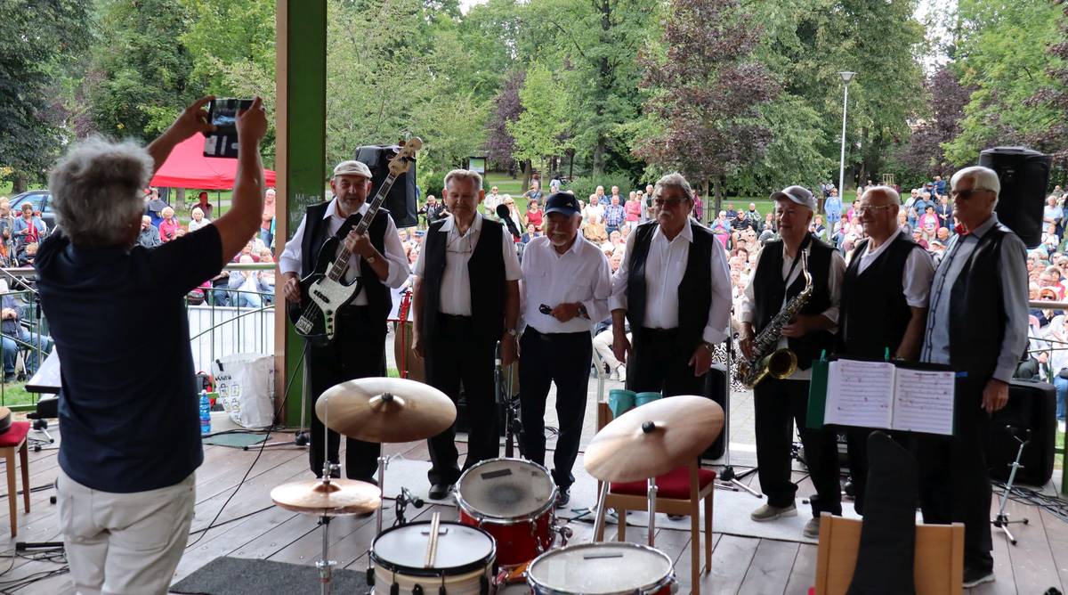 Nejstarším členem kapely je bubeník Waldemar Svatoš (vlevo), kterému na podzim bude 85 let, zatímco benjamínkem je čtyřiasedmdesátiletý baskytarista Zdeněk Kohut. Zcela vpravo je klávesista Karel Petr.
