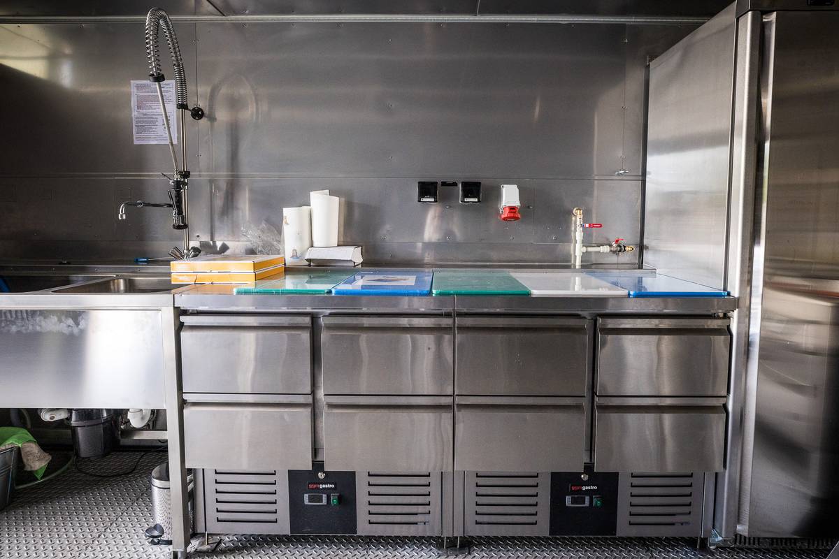 Každý z kontejnerů má rozlohu asi 15 metrů čtverečných. Teplá a studená zóna jsou spojené do jedné místnosti. Lze z nich přímo projít také do výdejny.