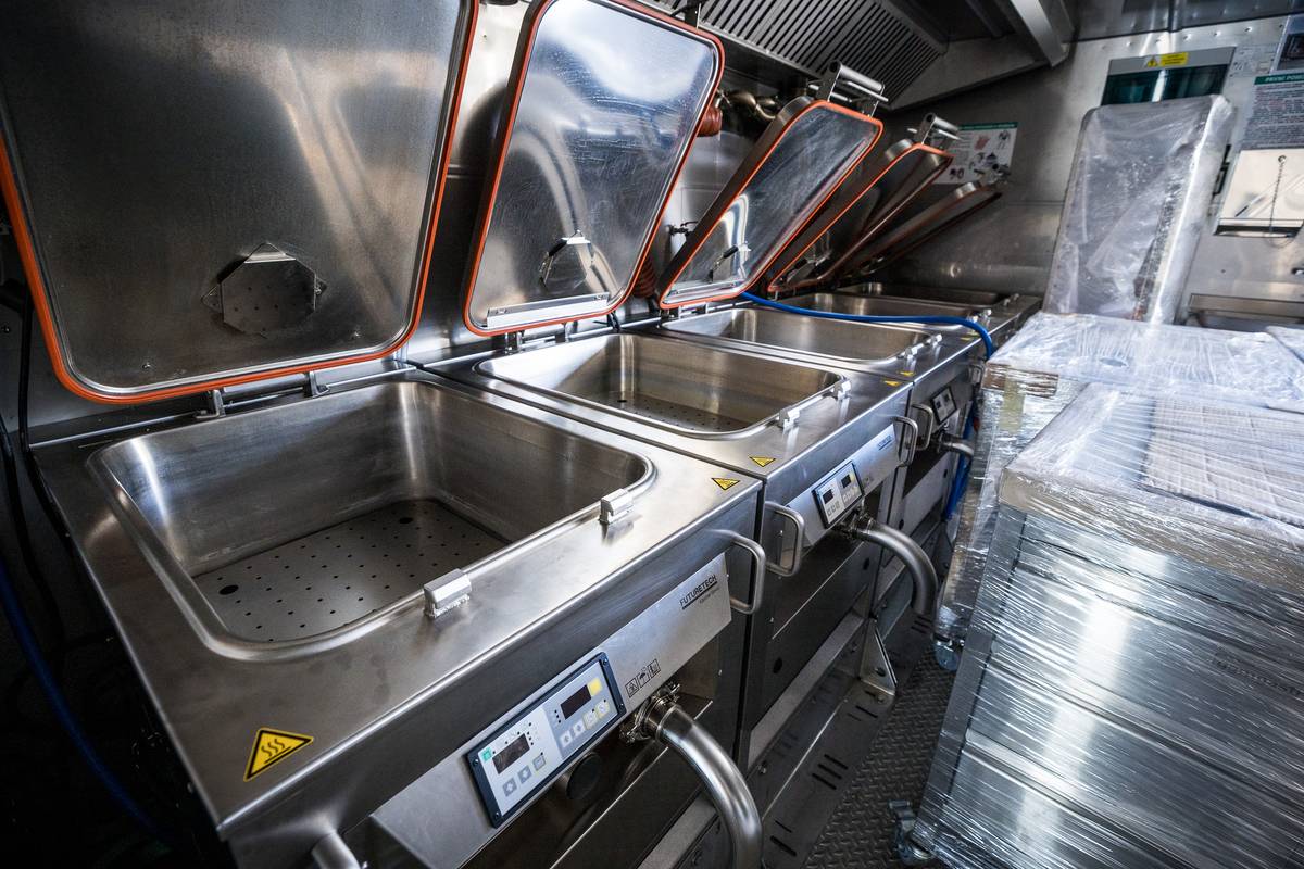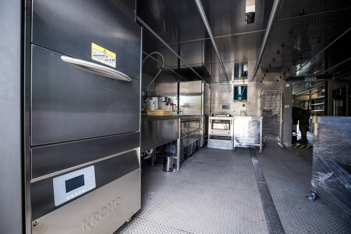 Vnitřní vybavení tří hlavních kontejnerů včetně friťáků, konvektomatů (vše na palivo) či lednice stálo 17 milionů korun.