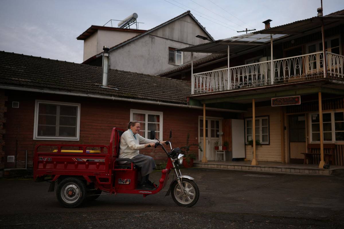 Rudiger Schmidtke opouští svůj dům na elektrické tříkolce ve Villa Baviera, dříve Colonia Dignidad.