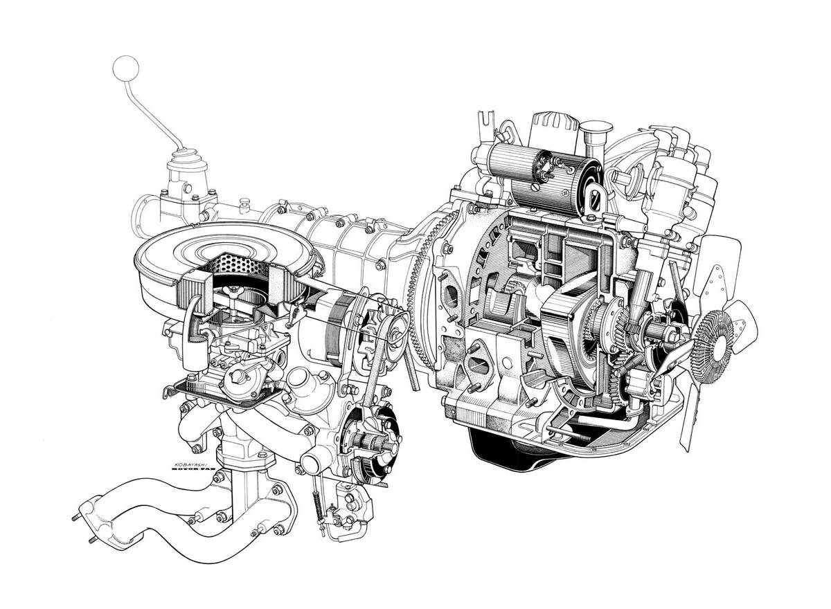 Zachoval typické rozvržení mechaniky s veškerou hmotou mezi nápravami, rozhodující pro jízdní obratnost.