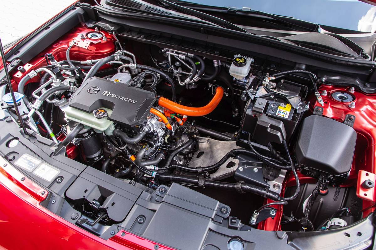 Přední část vychází ze spalovacího modelu CX-30. Pod kapotou elektrické verze zbývá hodně nevyužitého místa. Sem se Mazda rozhodla doplnit Wankelův motor.