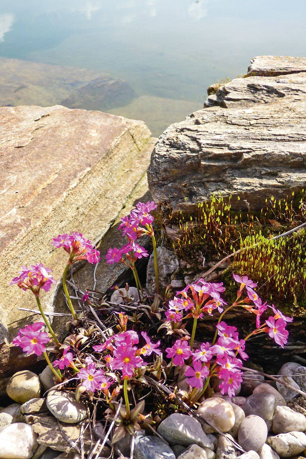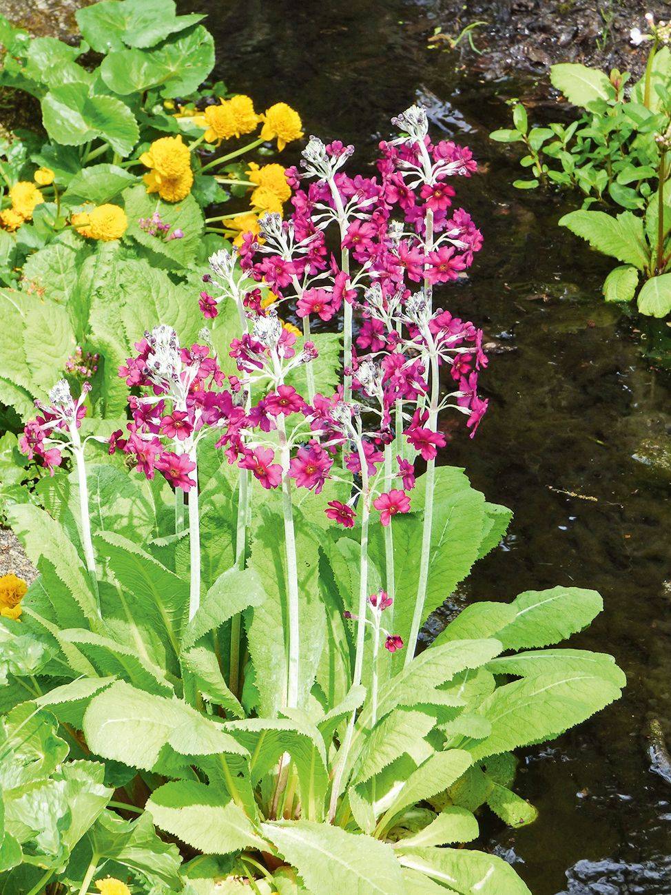 Japonská prvosenka (Primula japonica) je jeden z mnoha petrklíčů vhodných k vodě. Za ním je plnokvětý blatouch.