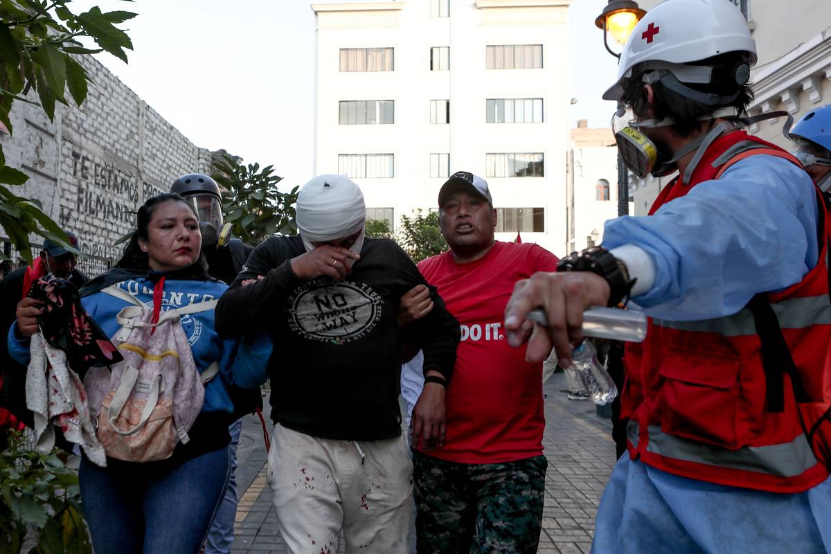 Mezi demonstranty je spousta zraněných se zlomeninami paží a nohou či s poraněním očí a břicha. Na snímku protest v Limě, 24. ledna.