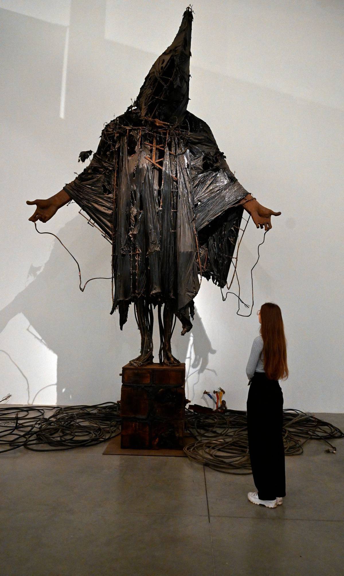 Socha Casting a Dark Democracy od Tima Shawa parafrázuje fotografii Američany mučeného vězně v iráckém žaláři Abú Ghrajb, která byla zveřejněna roku 2004.