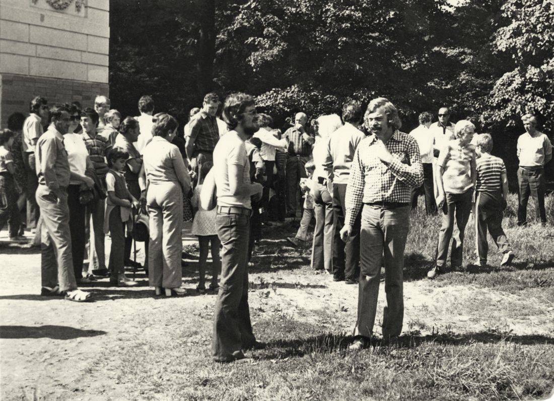 Seznamovací vycházka rekreantů u pramene v Zotavovně ROH Mír. Foto ze 70. let.