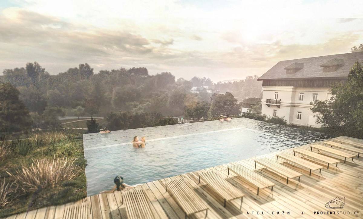 Vizualizace možné podoby areálu bývalých lázní Jánské Koupele. Architektonická studie od ATEL1ER 3M a PROJEKTStudio.