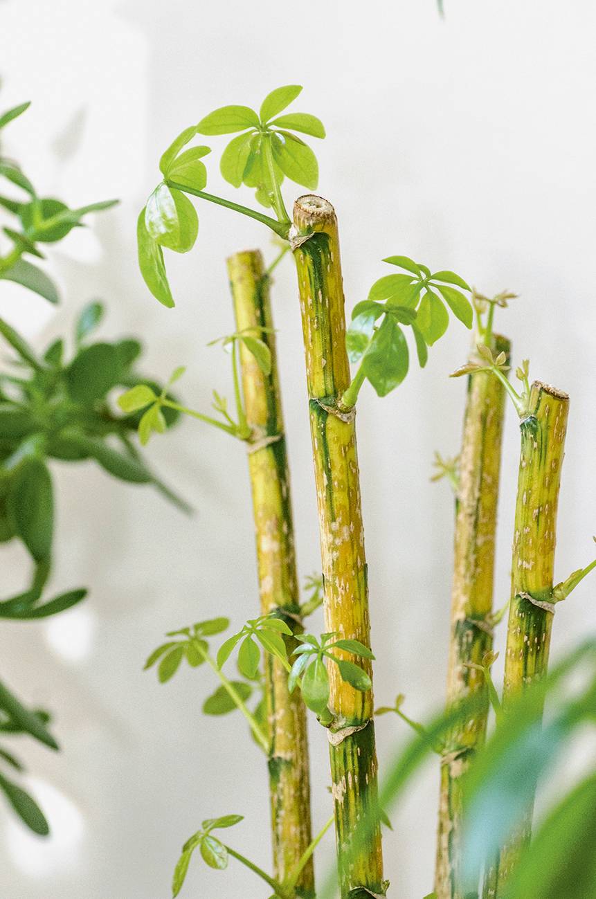 Vynikající regenerace z náhradních listových oček zaručuje, že se šeflera zotaví po radikálním zmlazení i po ztrátě listů zaviněné nesprávnou péčí.