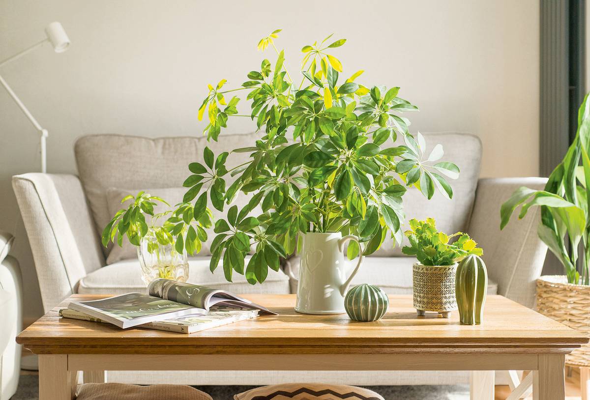 Dvoumetrová šeflera (Schefflera arboricola), to už je panečku úctyhodný pěstitelský úspěch. Listy pravidelně kontrolujeme, zdali na nich neřádí škůdci.