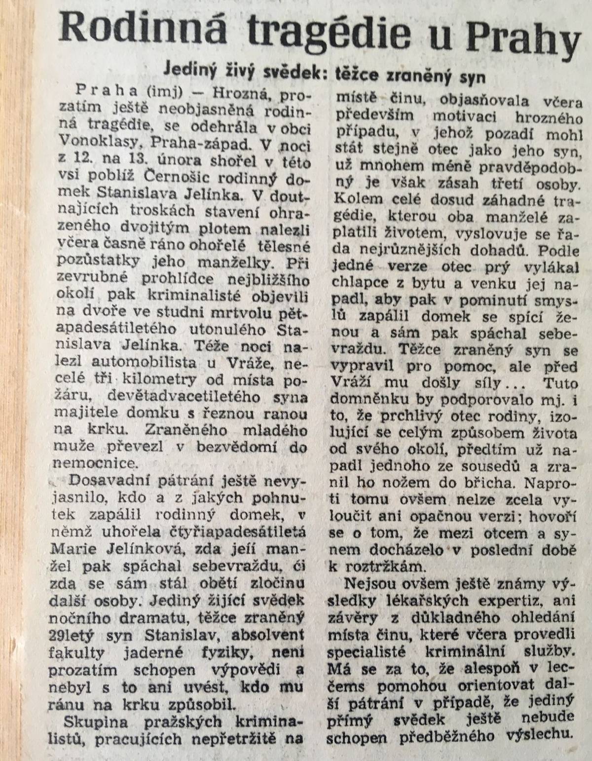 Stíhání Stanislava Jelínka st. za trestný čin ublížení na zdraví bylo zastaveno kvůli úmrtí pachatele.
