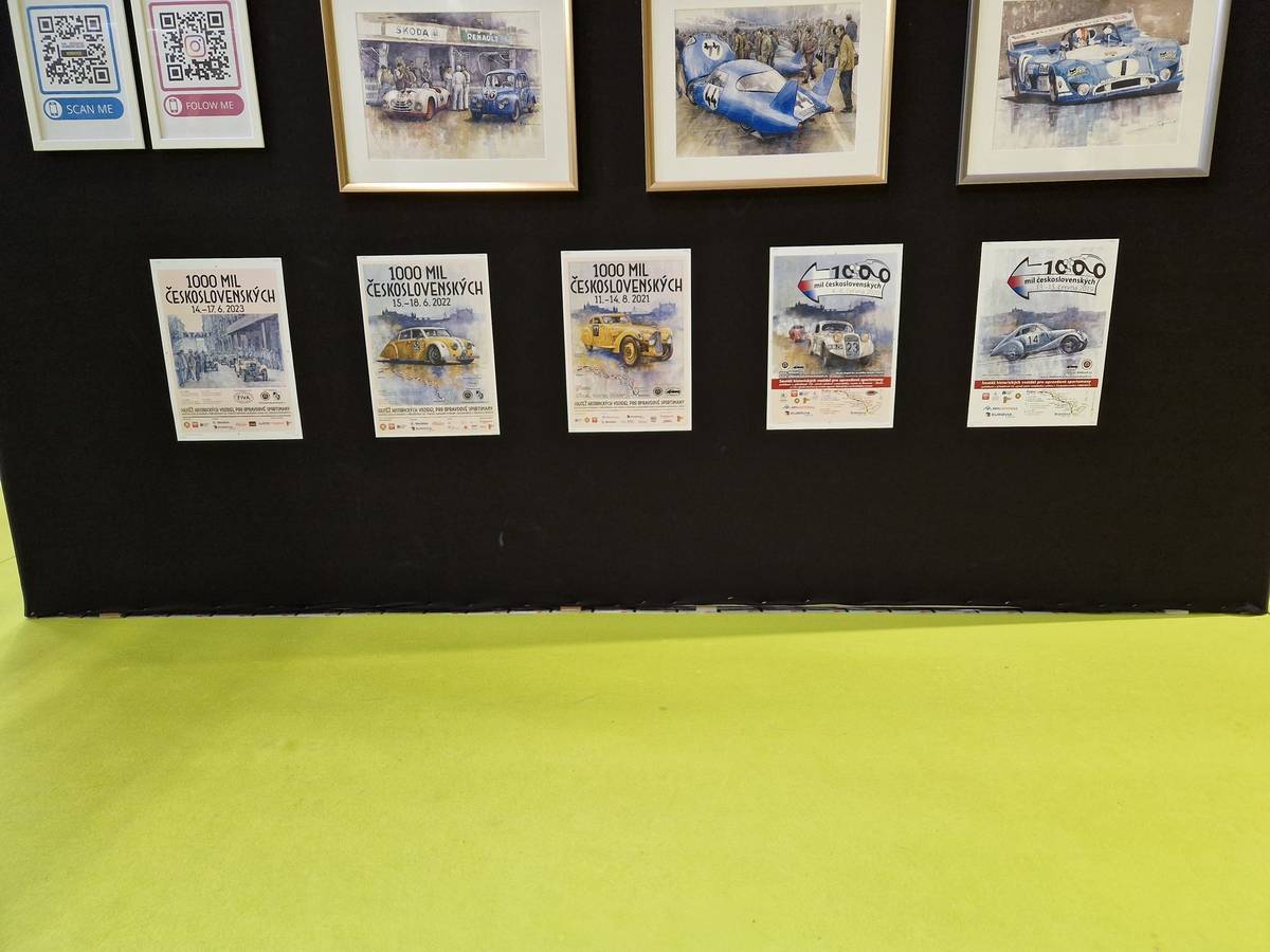 Nechybí ani obrazy, za povšimnutí tady stojí jednak nádherné plakáty k modernímu pojetí závodu 1000 mil československých, jednak také kresba o kousek výše se Škodou 1101 Sport.