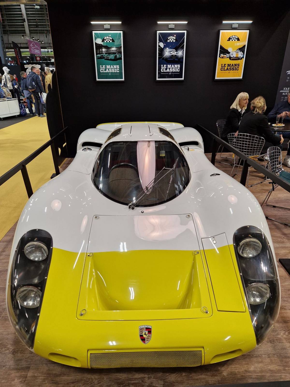 Dalším z témat letošního ročníku Retromobile byla oslava sta let od první čtyřiadvacetihodinovky Le Mans. Kromě speciálního stánku s některými zajímavými modely z minulosti se vozy spojené s tímto významným sportovním podnikem objevovaly i různě po celém výstavišti. Porsche 907-031 ve žluto-bílé barevné kombinaci pak bylo dokonce autem z plakátu letošního ročníku. Je to předposlední vyrobený kus, který se zúčastnil mnoha vytrvalostních závodů, z toho třikrát mezi lety 1970 a 1972 i 24 hodin Le Mans.