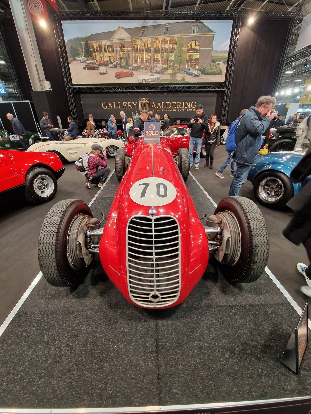 Jen 27 kusů závodního typu 6CM vyrobilo mezi lety 1936 a 1940 Maserati. Ačkoliv to tak nevypadá, není to nijak velký stroj, na délku měří 3,72 metru a pod dlouhou kapotou je 1,5litrový šestiválec. Auto bylo na prodej, cenu ale sdělil prodejce jen vážnému zájemci. Ten se zjevně našel, jak prozrazuje cedulka "prodáno".
