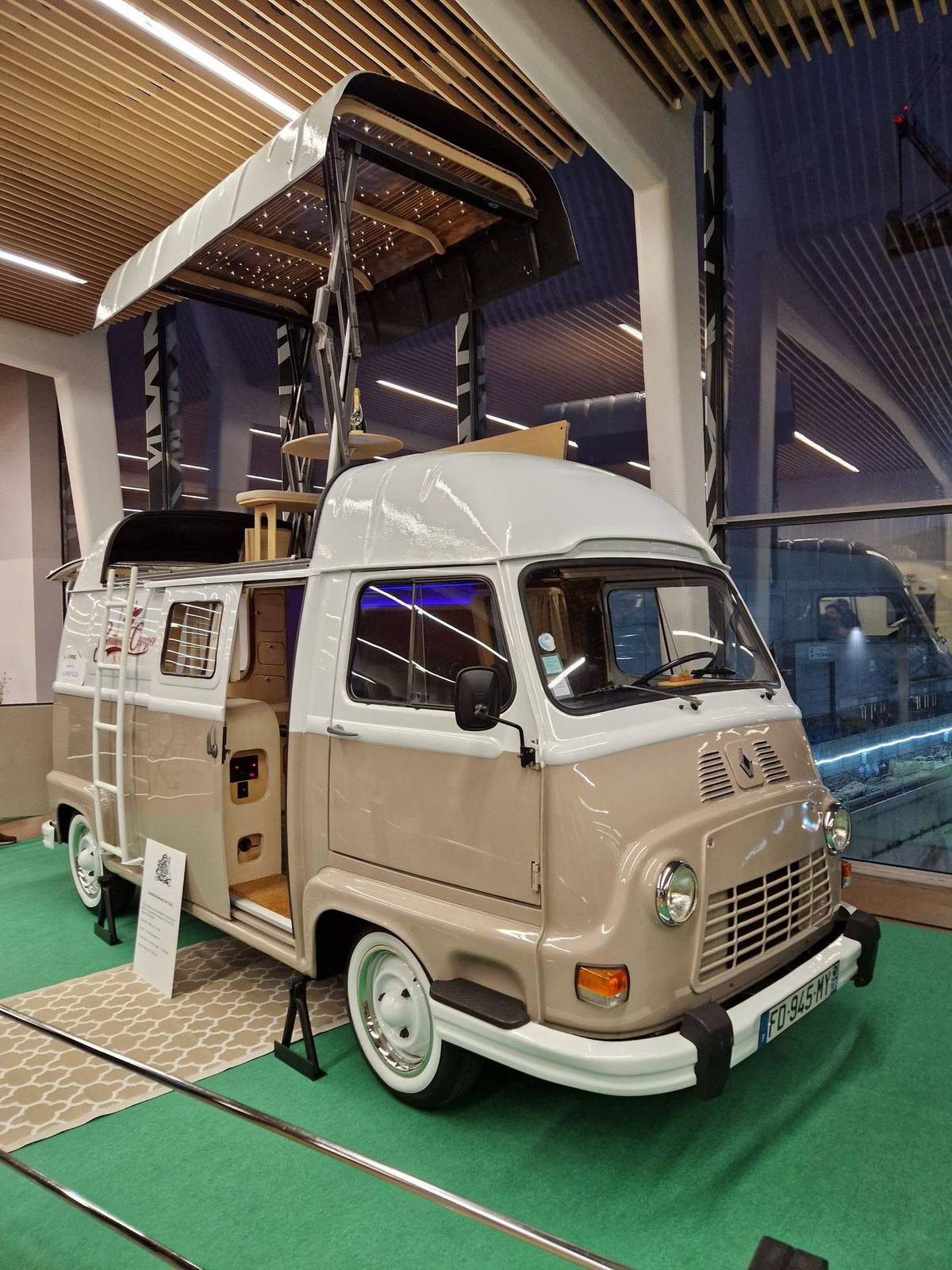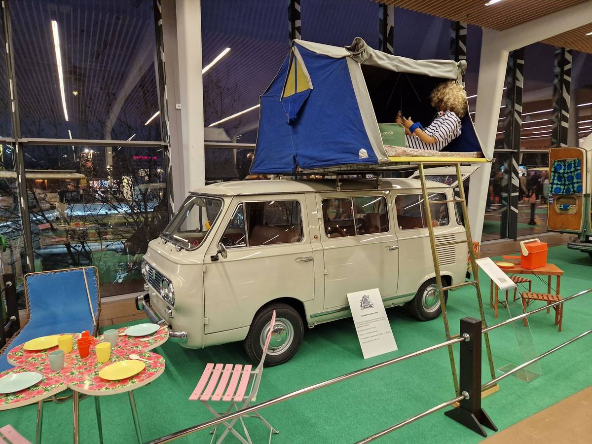 Jedna z expozic se pro změnu věnovala fenoménu obytných automobilů (či zkrátka karavaningu jako způsobu života), jakkoliv celá řada z nich byla během let upravena a přestavěna. Třeba jako tento Renault Estafette z roku 1969, který dostal obytnou vestavbu až po svém vzniku, ovšem zase vybavenou výsuvnou střechou, která odkrývá pozoruhodnou terasu s posezením. Leze se na ni pomocí bočních schůdků, výhled pak musí být skutečně výstavní.
