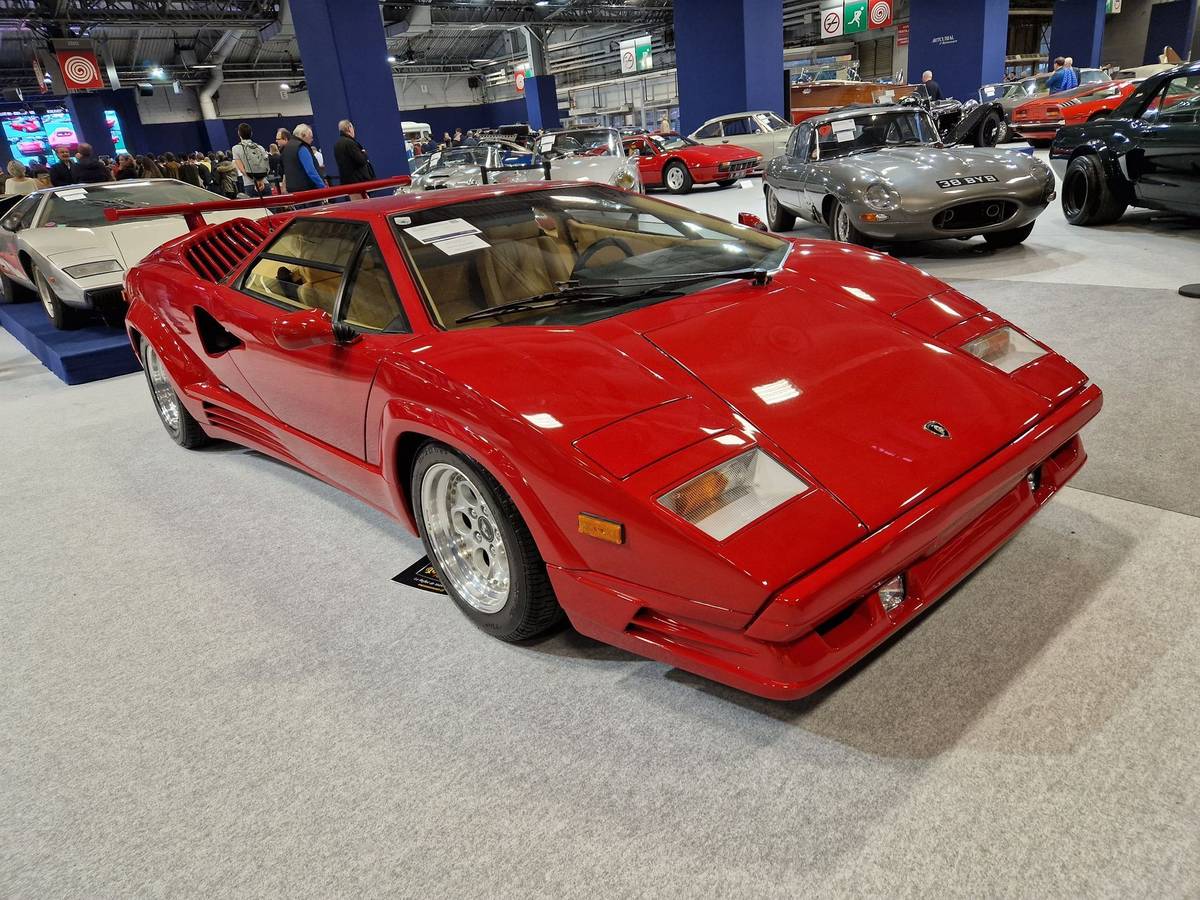 Kromě Ferrari prodávala aukční síň v Paříži i stovky dalších automobilů a věcí s automobily více či méně spojených. Jedním z ceněných vozů bylo toto Lamborghini Countach 25th Anniversary z roku 1989, které najelo od vyrobení jen 7410 kilometrů. Prvním majitelem byl pak známý závodník Mario Andretti.