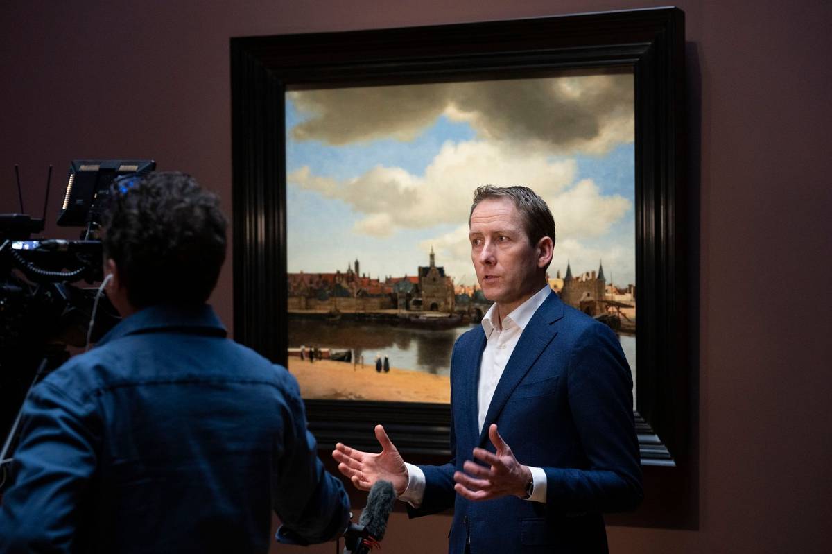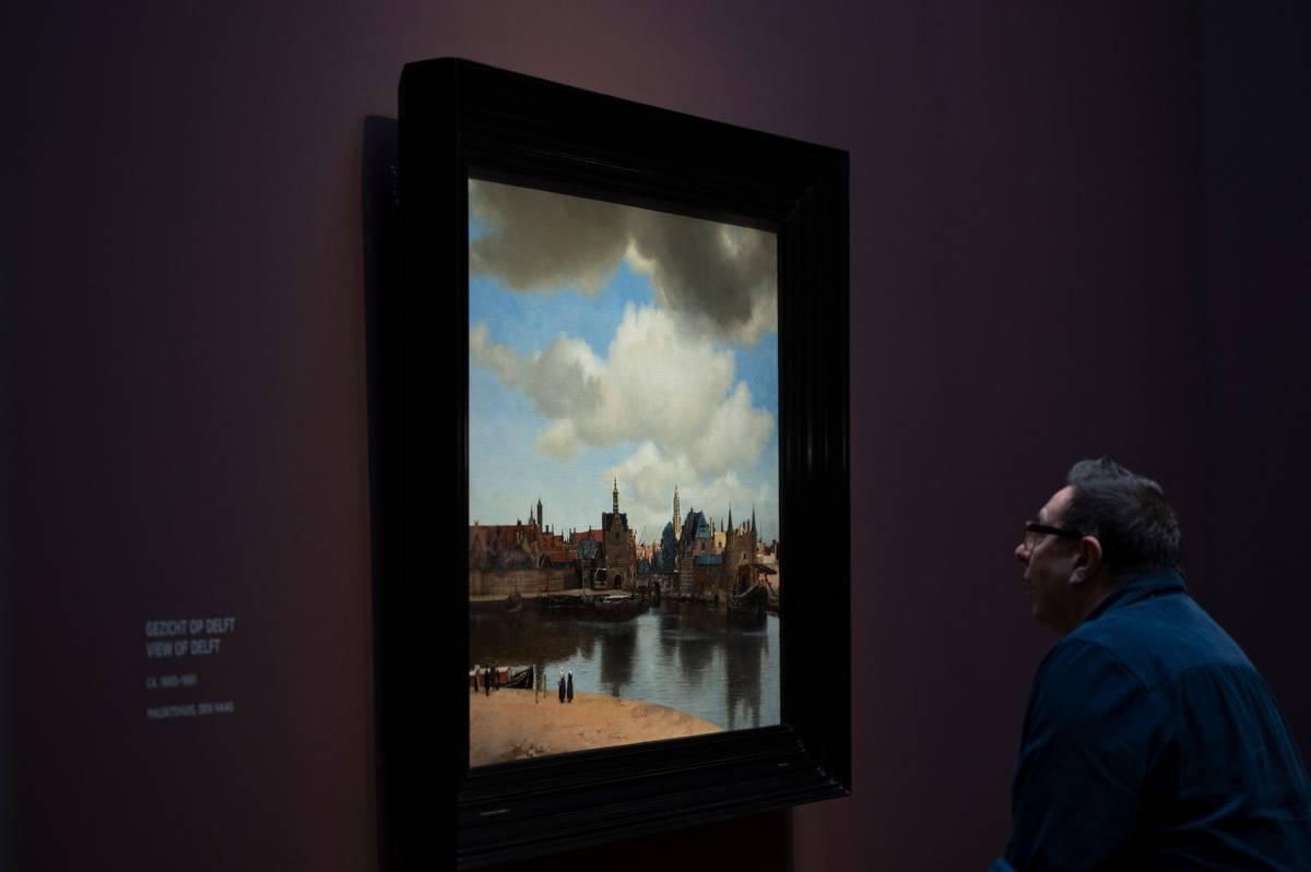 Kurátor Pieter Roelofs před obrazem Pohled na Delft, 1660 až 1661.