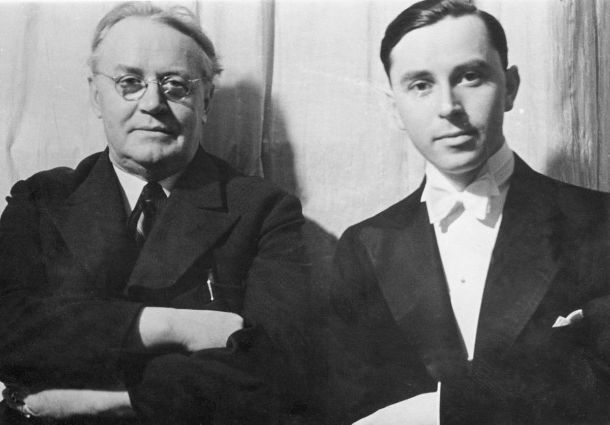 Gustav Svojsík (na snímku vpravo) s houslistou Janem Kubelíkem. Fotografie ze 17. dubna roku 1940.