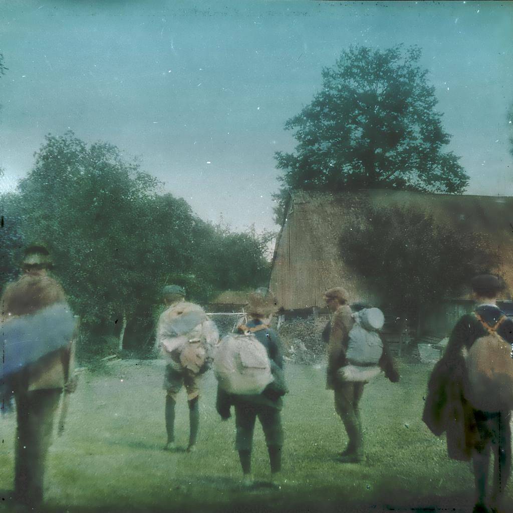Skauting v českých zemích založil středoškolský profesor Antonín Benjamin Svojsík, který se v roce 1911 vypravil do Anglie a po vzoru Roberta Baden-Powella začal s prvními pokusy i doma. Na kolorované fotografii výprava prvních českých skautů do přírody.