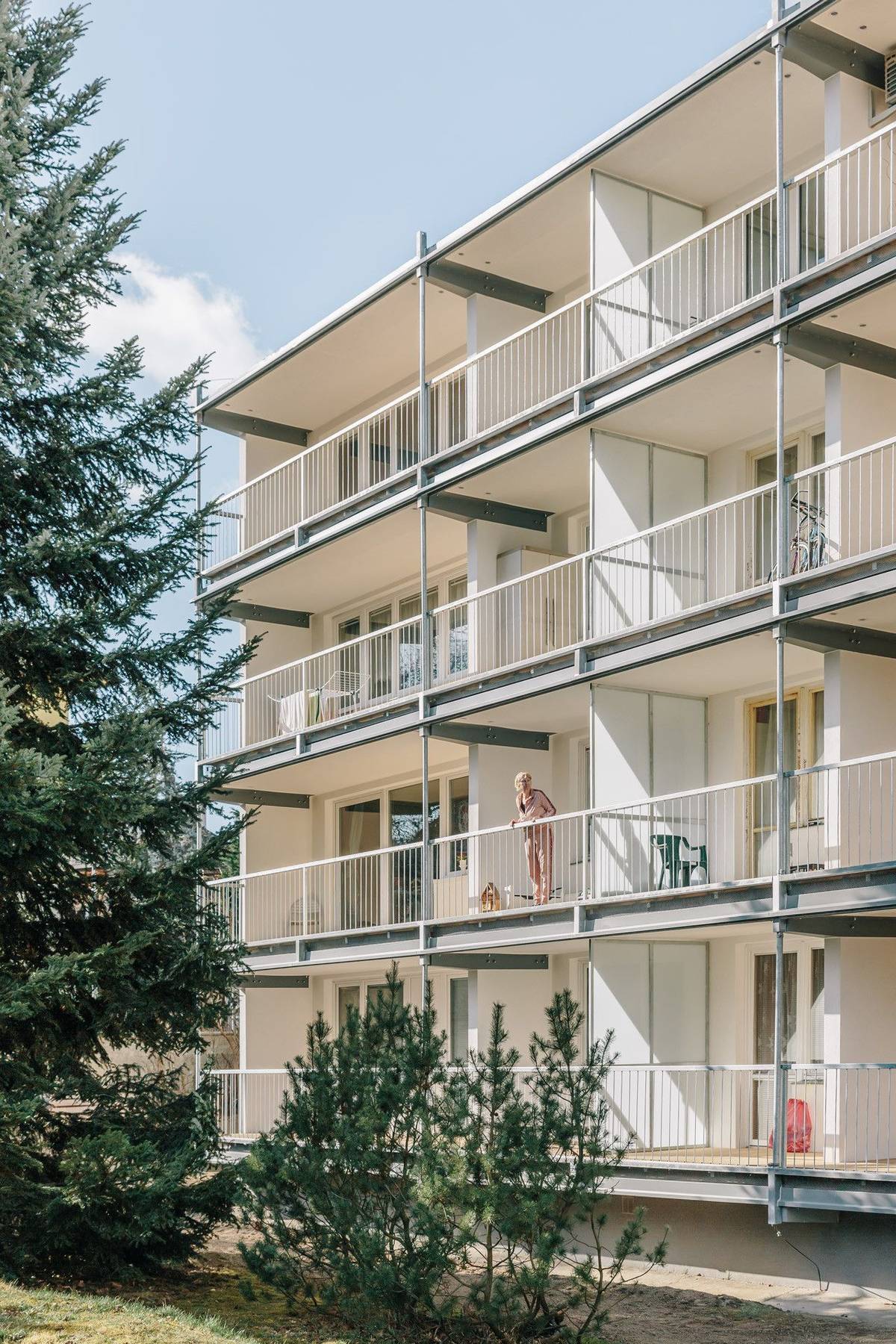 Panelový dům v pražské Hostivaři je díky rekonstrukci lepším místem pro život. Studio re:architekti opravilo šedesát let starou fasádu a rozšířilo lodžie s výhledem do parku.