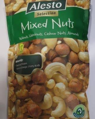 Alesto Selection, Mixed Nuts. Jádra vlašských ořechů byla žluklá. Potravina se nepovažuje za bezpečnou, pokud jeví známky kažení. Potravina neměla prošlé datum minimální trvanlivosti. Prodával Lidl Brno, Žebětínská, prosinec 2022.