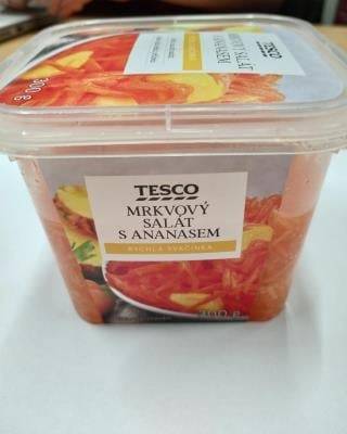 Mrkvový salát s ananasem, Tesco Hradec Králové. Výrobek měl nafouklý obal, uvnitř výrobku se tvořily bublinky plynu. Po otevření balení byl patrný silný zápach po kažení. Potravina se nepovažuje za bezpečnou, pokud jeví známky kažení.
