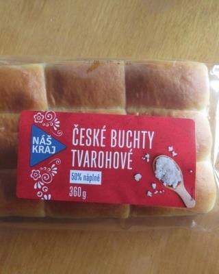 ČESKÉ BUCHTY TVAROHOVÉ 50% náplně 360 g. Na povrchu potraviny se na konci doby trvanlivosti vyskytovaly plísně viditelné pouhým okem. Potravina se nepovažuje za bezpečnou, pokud jeví známky kažení. Místo kontroly Penam Prostějov, leden 2023