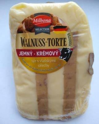 Milbona SELECTION Wallnuss-Torte, jemný - krémový sýr s vlašskými ořechy. U některých balení byl zjištěn pod obalem výskyt kolonií plísní. Potravina se nepovažuje za bezpečnou, pokud jeví známky kažení.