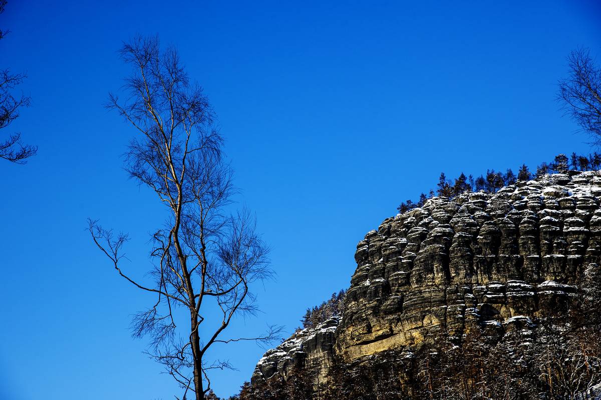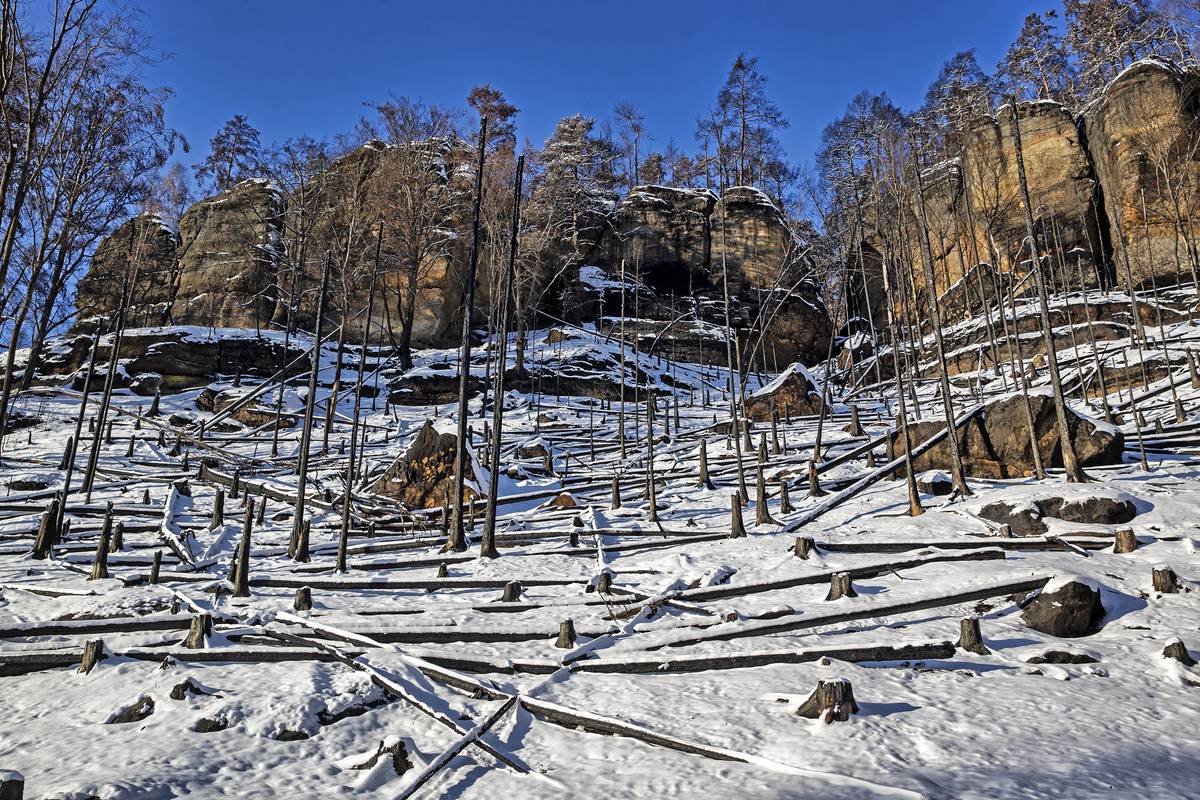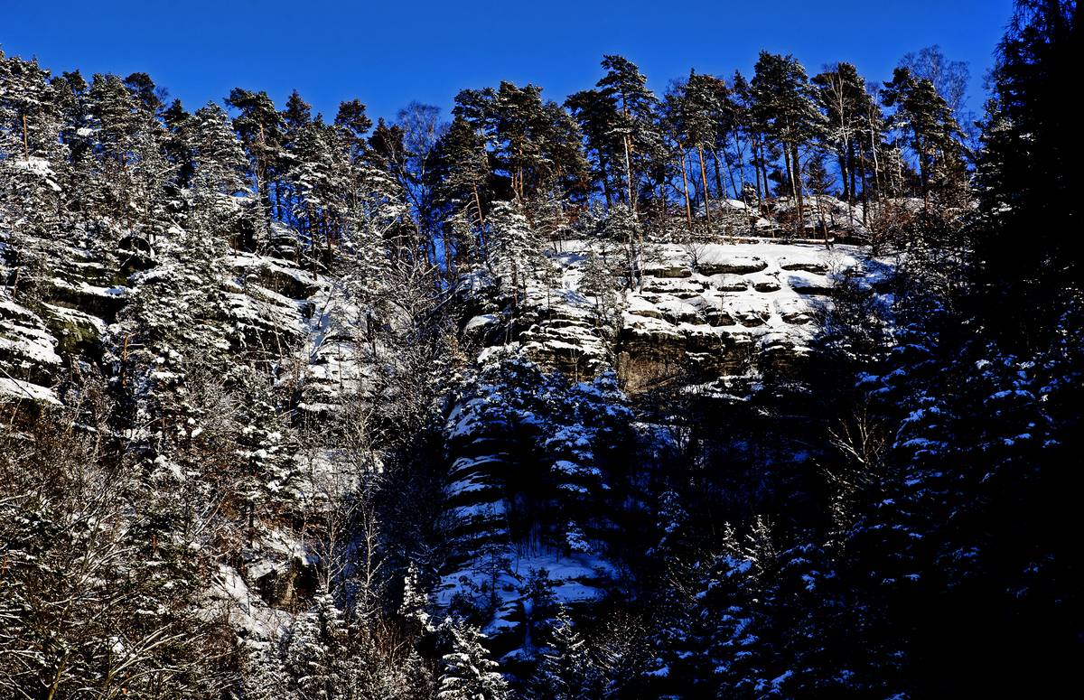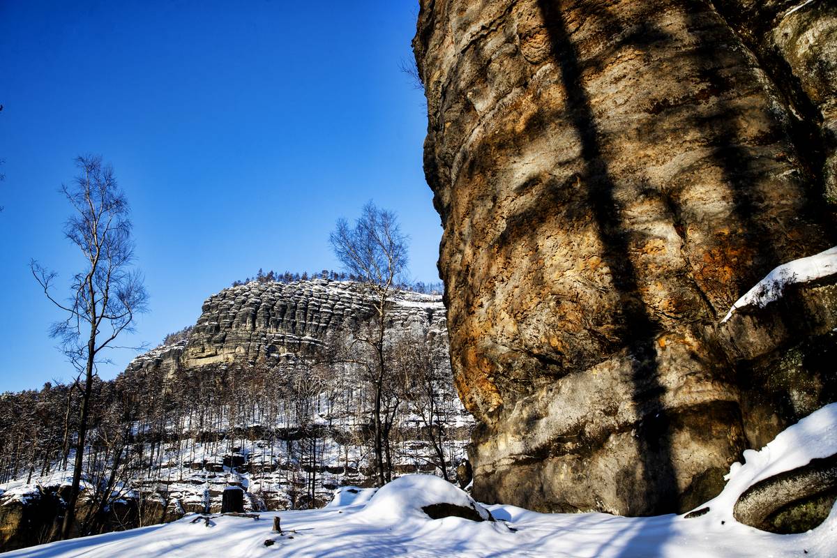 Národní park České Švýcarsko pod sněhem.
