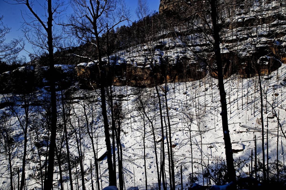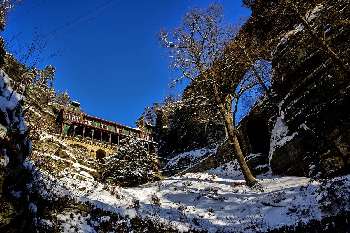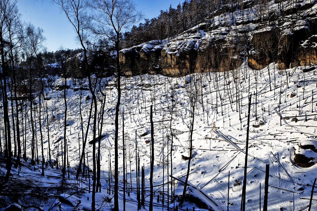 Národní park České Švýcarsko pod sněhem.