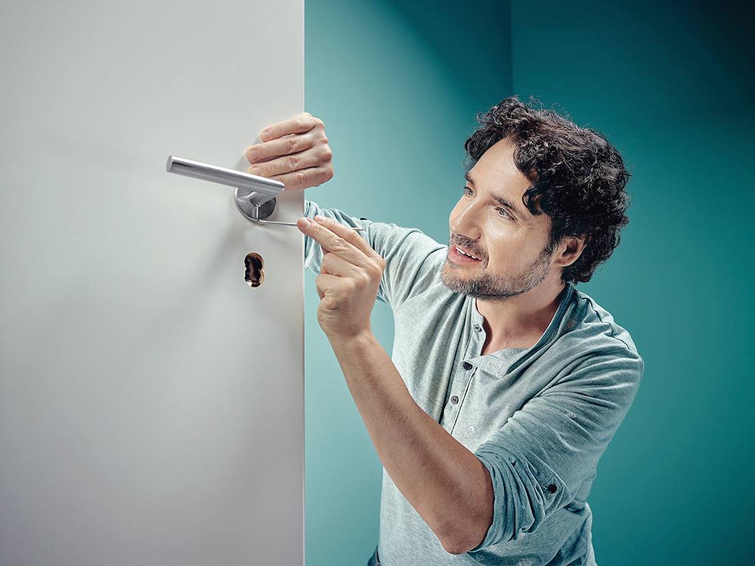Tloušťku dveří nepomíjíme kvůli dostatečné délce spojovacích šroubů, které zakoupíme v sadě s kováním. Když se nám líbí kování, jež úplně neodpovídá tloušťce dveří, vyřešíme problém prodlužovací sadou s delším čtyřhranem a montážními šrouby.
