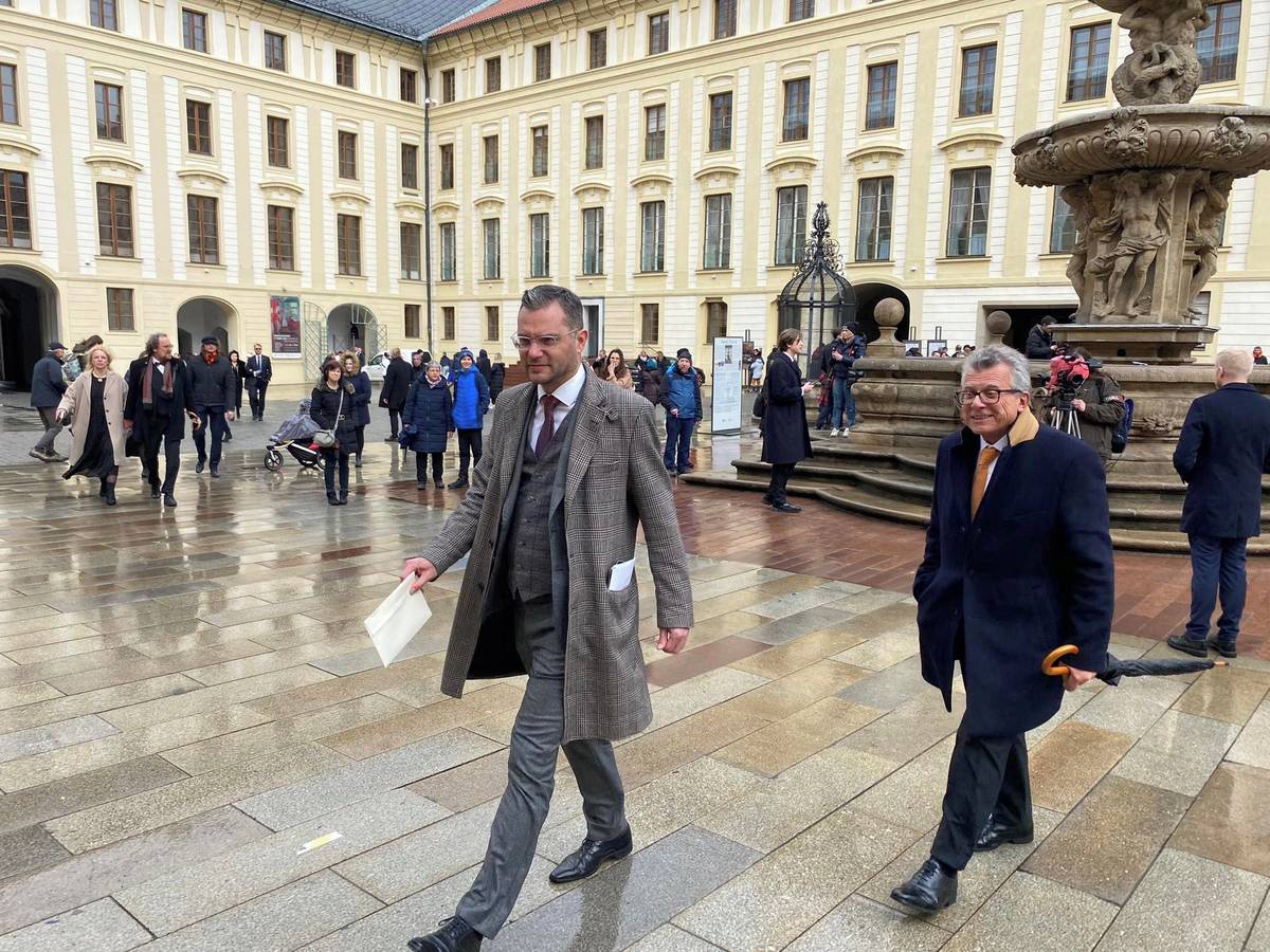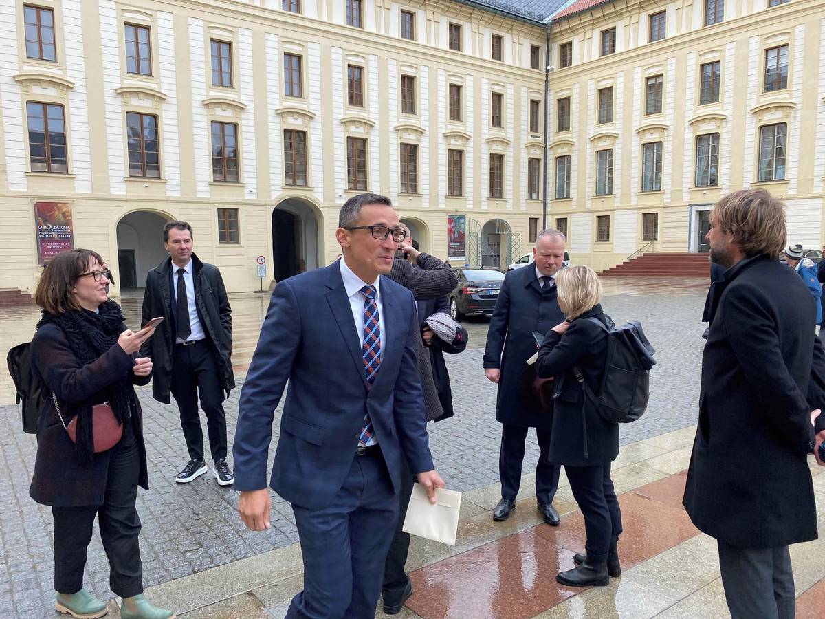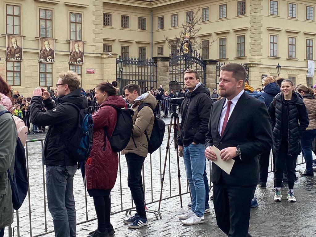 Reportérka Seznam Zpráv na Hradčanském náměstí zachytila i guvernéra České národní banky Aleše Michla.