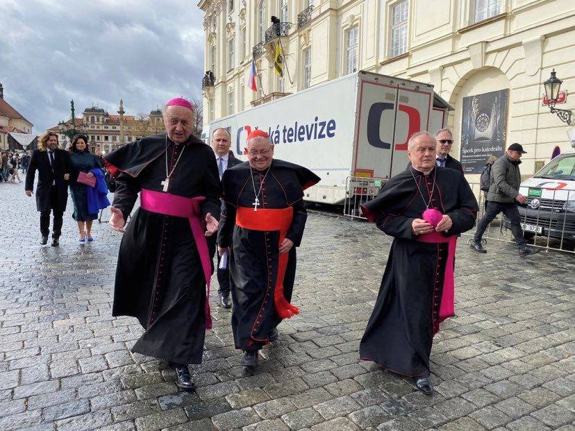 Zástupci duchovní sféry - zleva pražský arcibiskup Jan Graubner, kardinál Dominik Duka a biskup královéhradecký Jan Vokál.