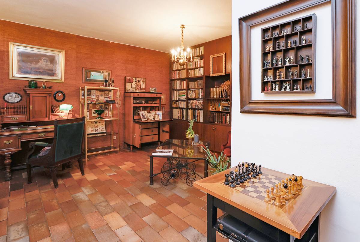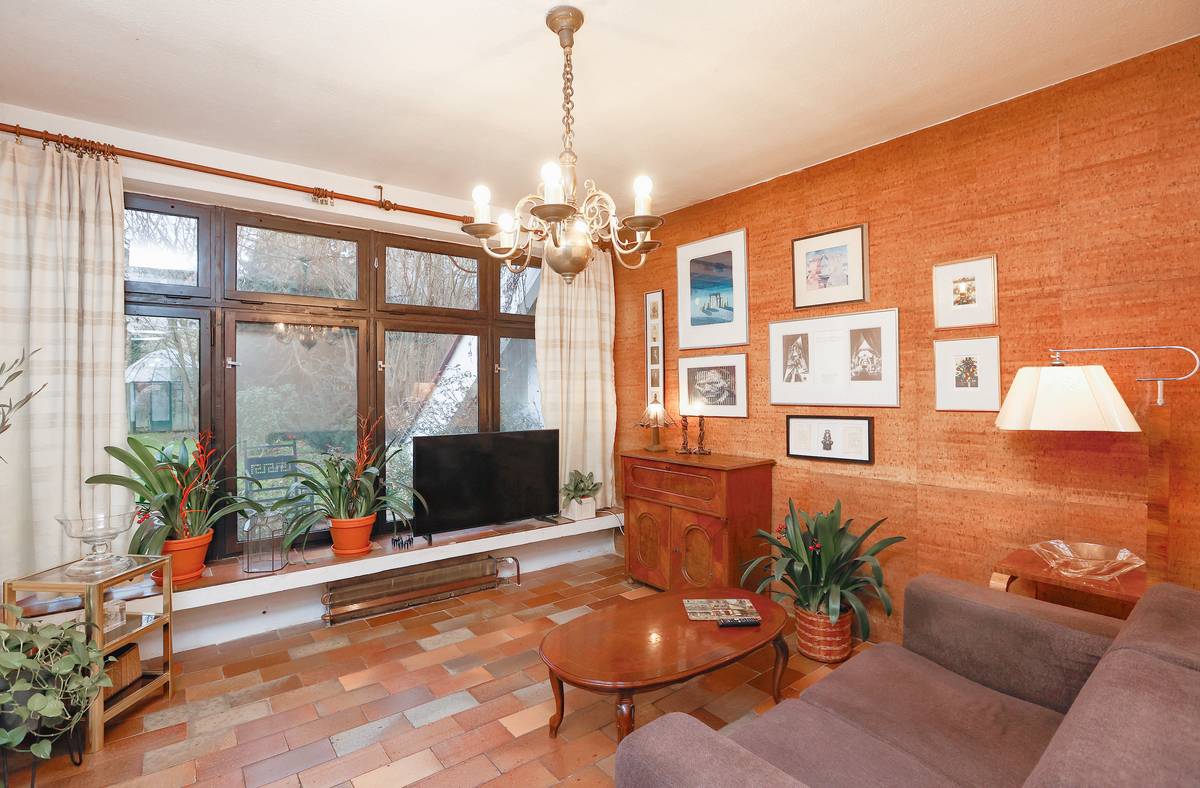 „Televizní“ salonek je opticky propojen se zahradou. Sestava z tehdy dostupných oken předběhla dobu.