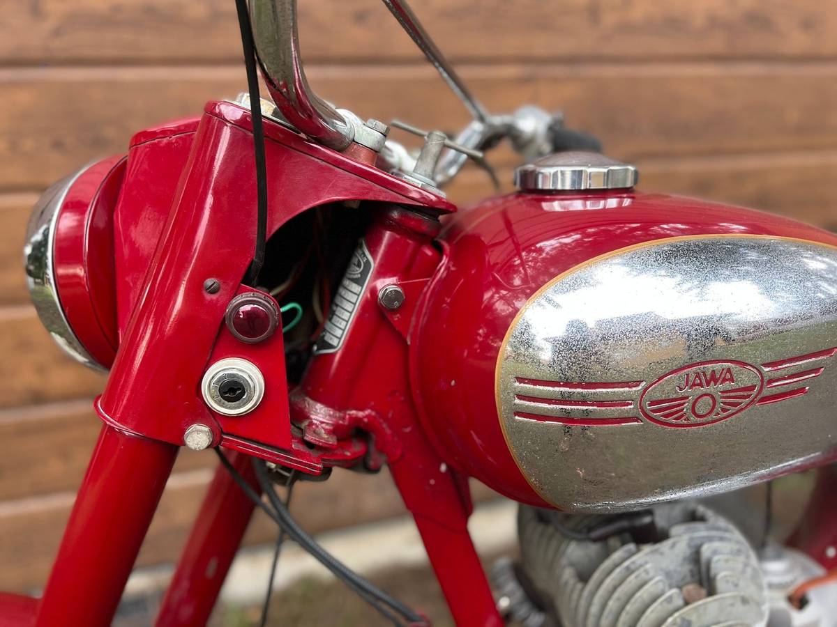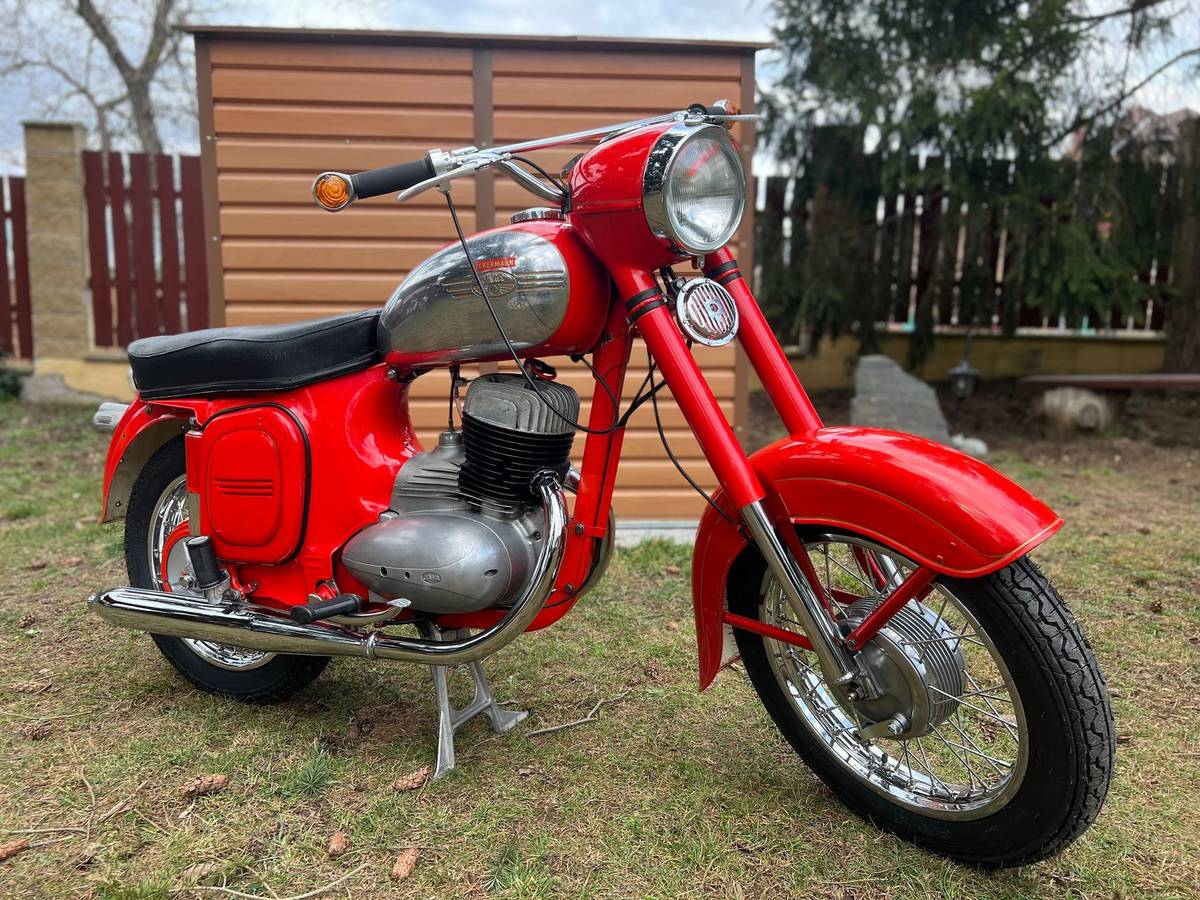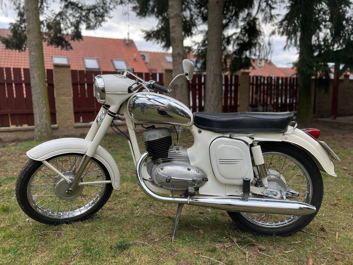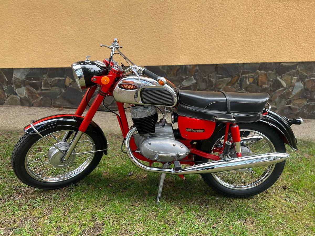 Krásná Jawa 250/509 Californian ve vývozním provedení pro obchodní řetězec Neckermann.
