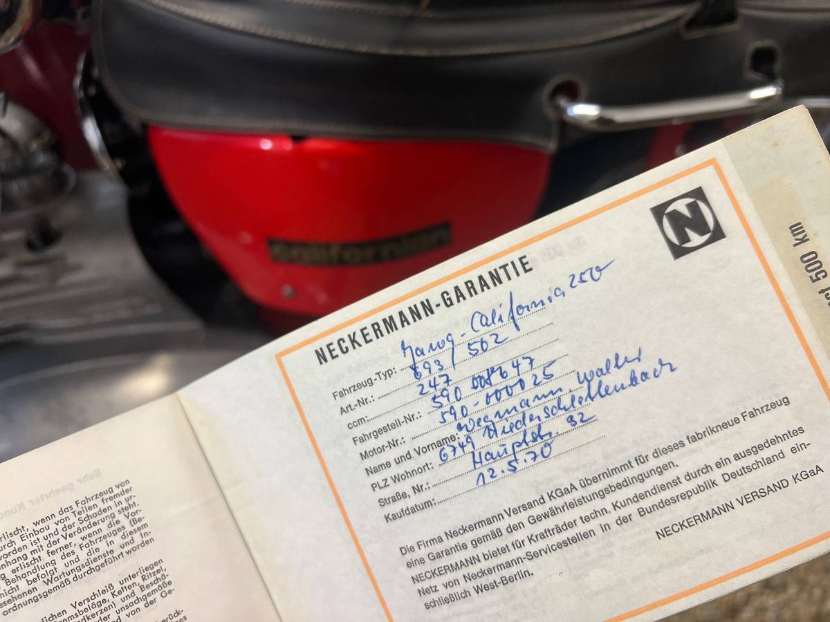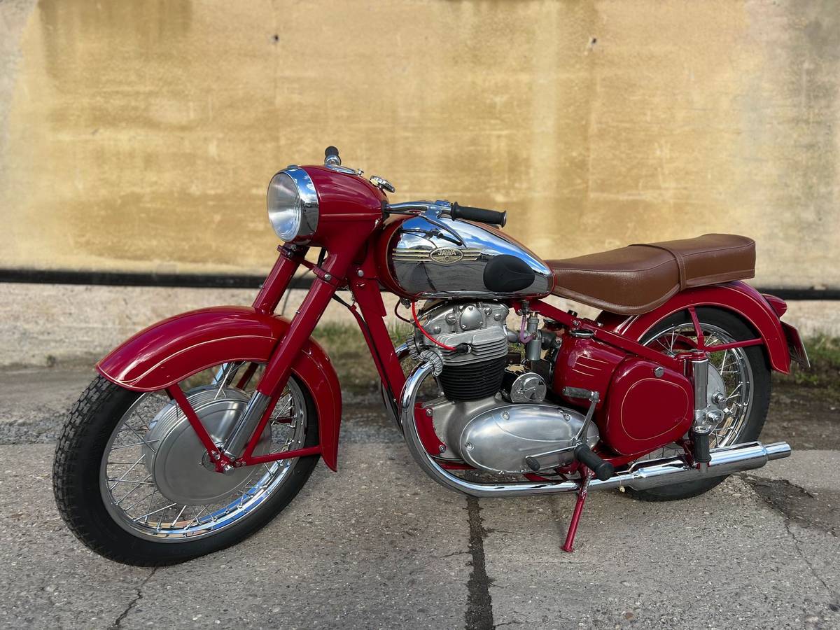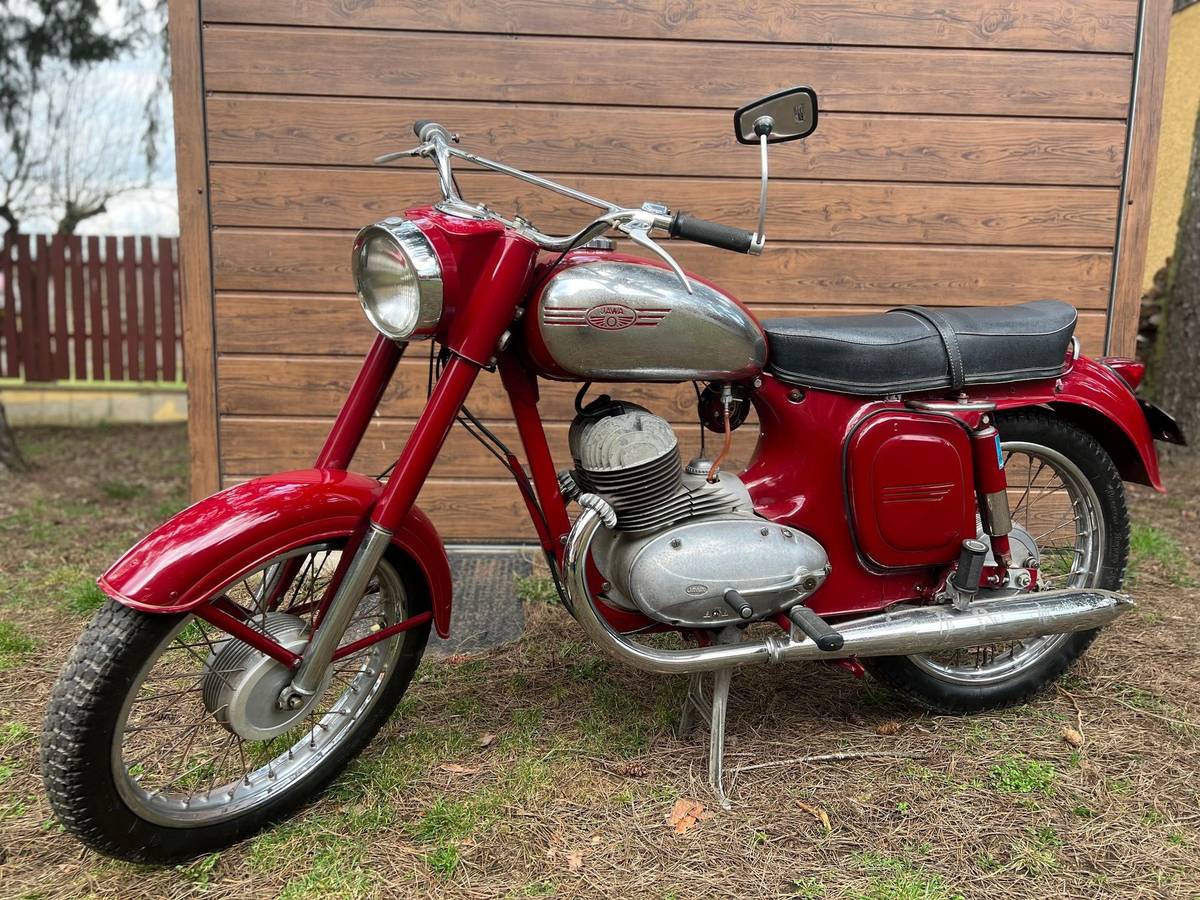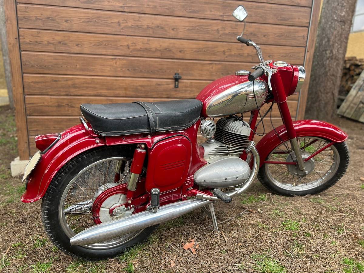 Krásná Jawa 250/509 Californian ve vývozním provedení pro obchodní řetězec Neckermann.
