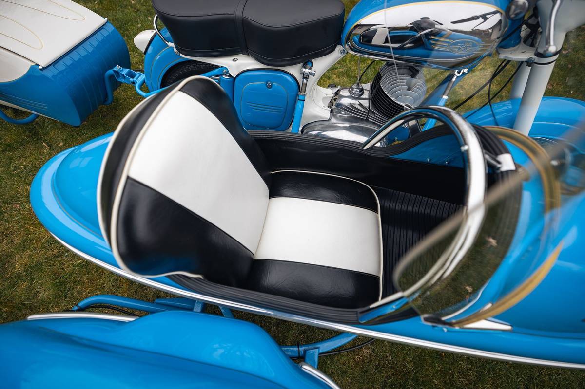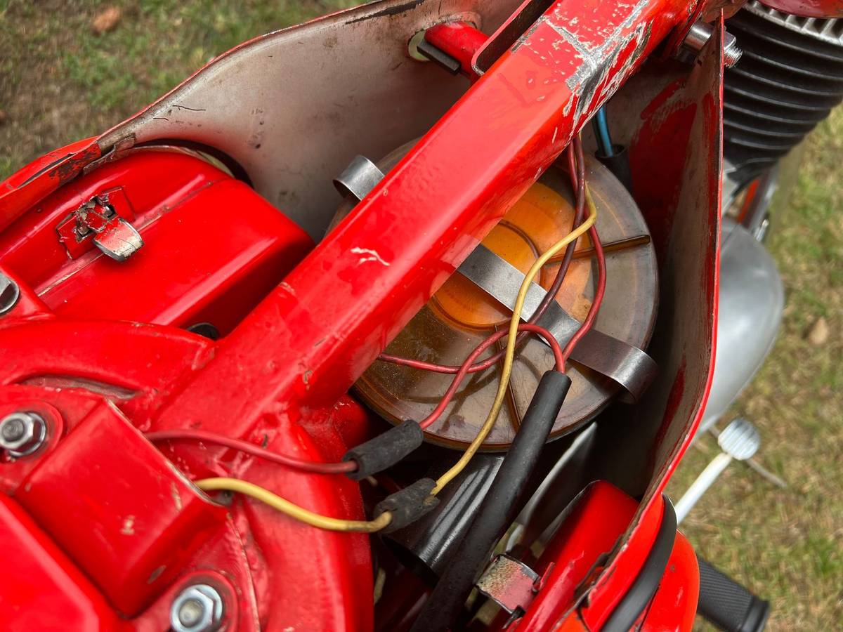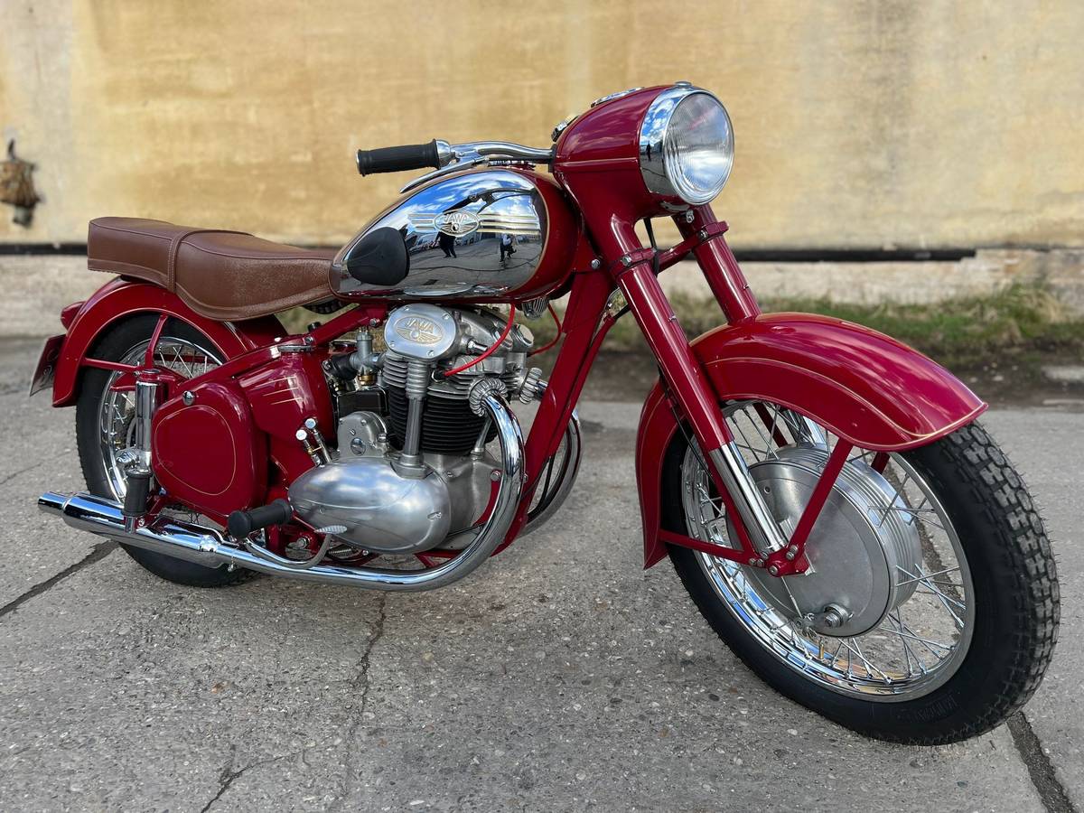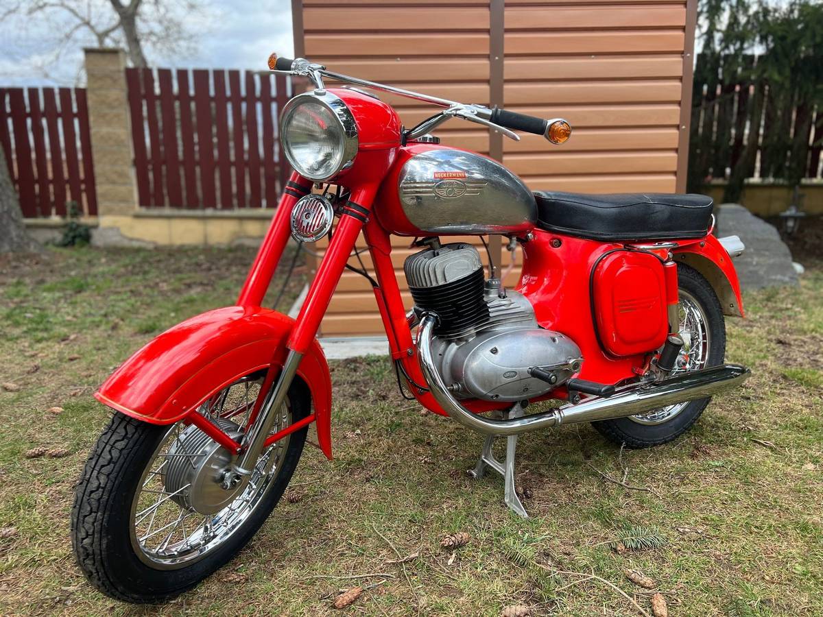 Motocykl v nesehnatelném původním stavu s pouze drobnou patinou ve vzácné a zřídka vídané barvě šípková červeň.
