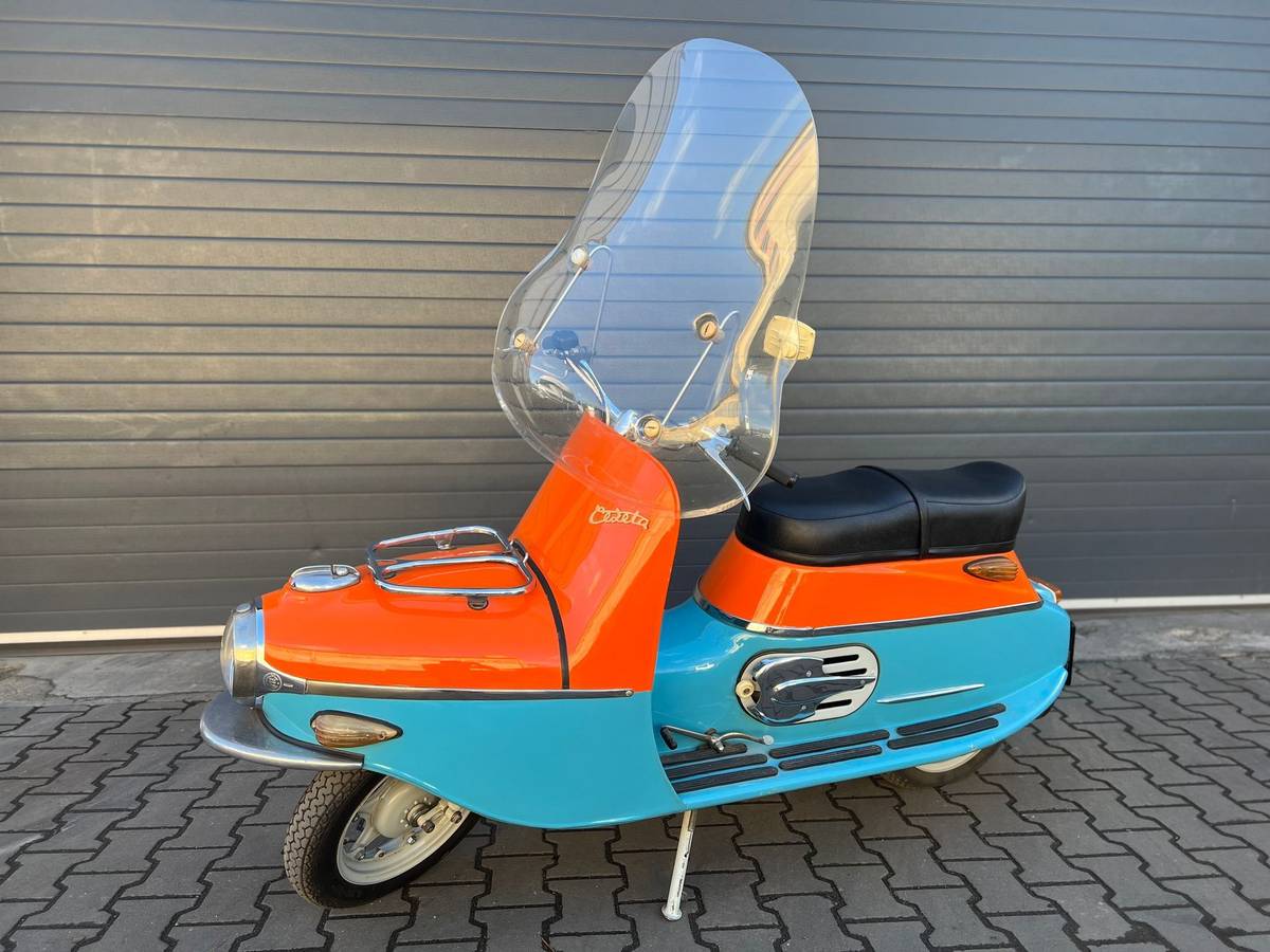 Čezeta 502 po renovaci, cena stanovena na minimálně 50 tisíc korun.