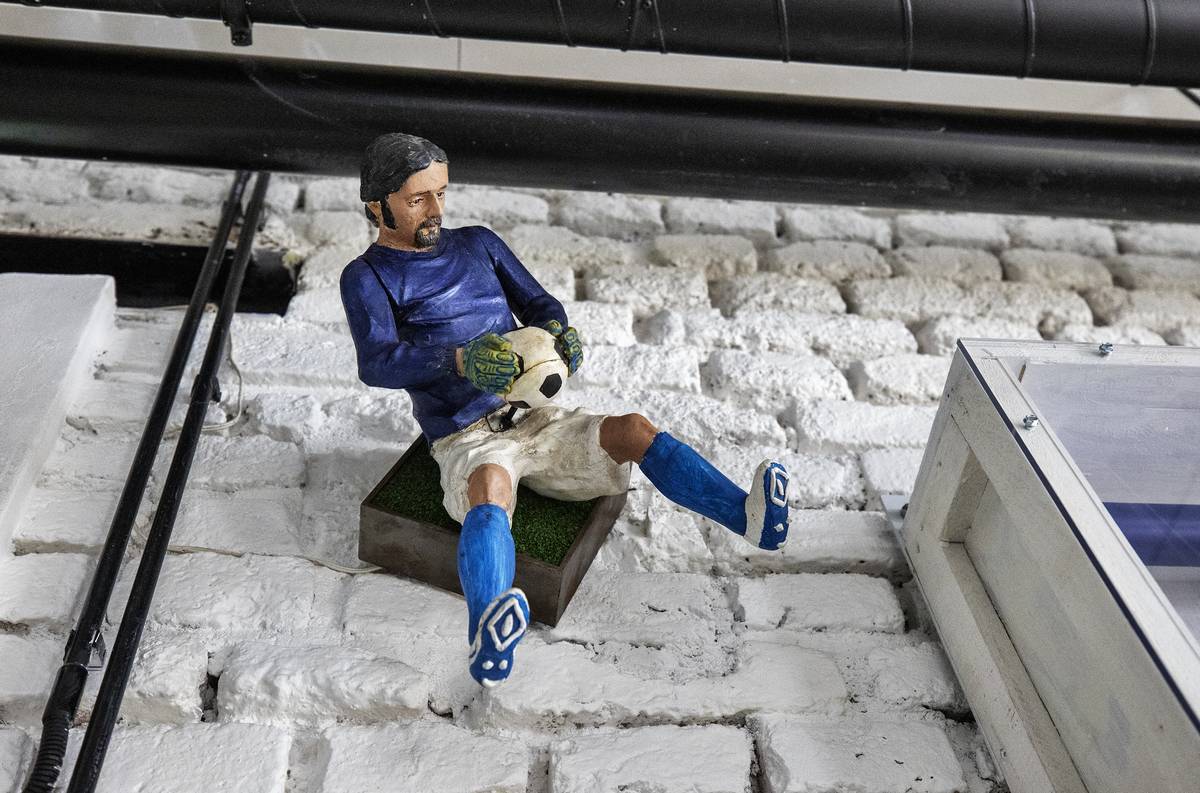 Postavička fotbalisty z části díla Entropa, která symbolizovala Itálii - zemi žijící kopanou.