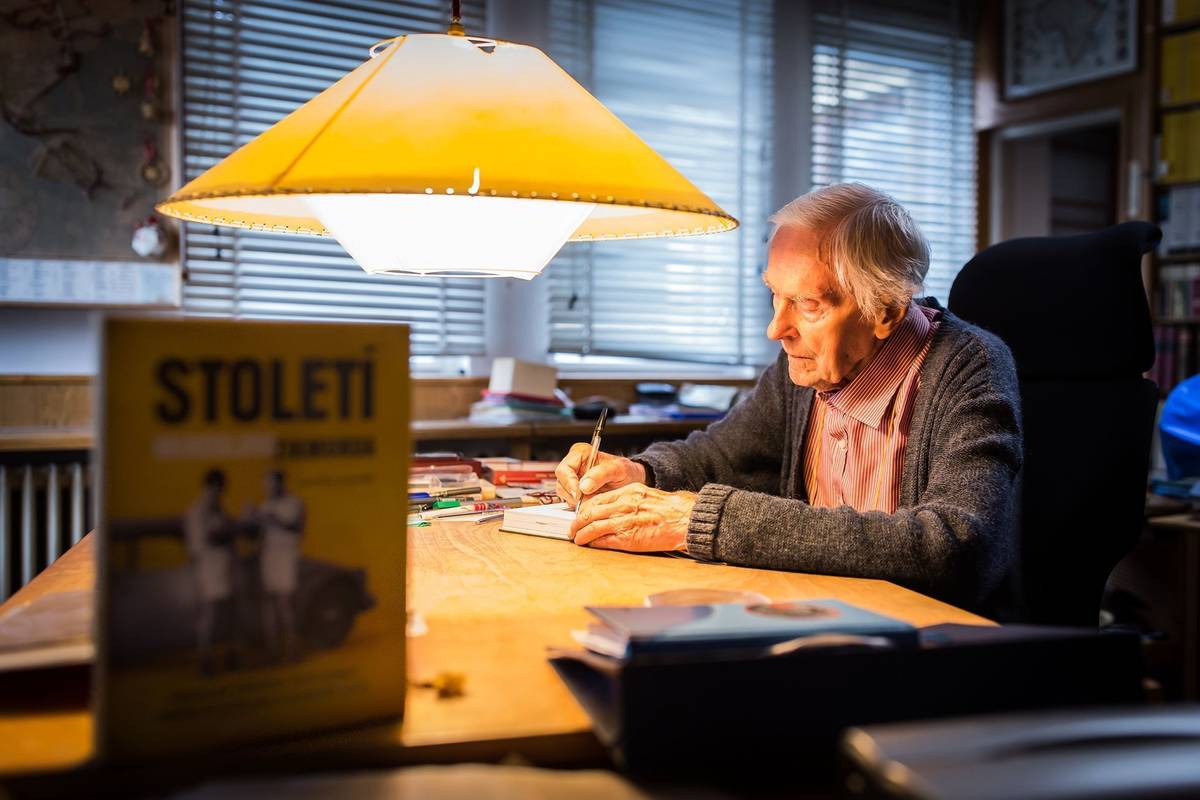 "Natáčeli jsme v jeho vile a on si pro nějakou knížku, kterou nám chtěl ukázat, vyběhl po schodech do prvního patra a hned zase seběhl. Ve své rozsáhlé knihovně i archivu vždy přesně věděl, kde co má," vzpomíná Stach.