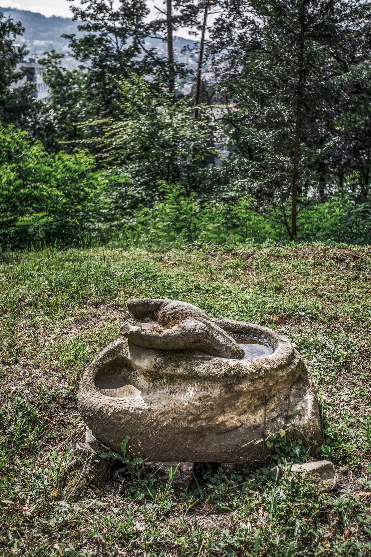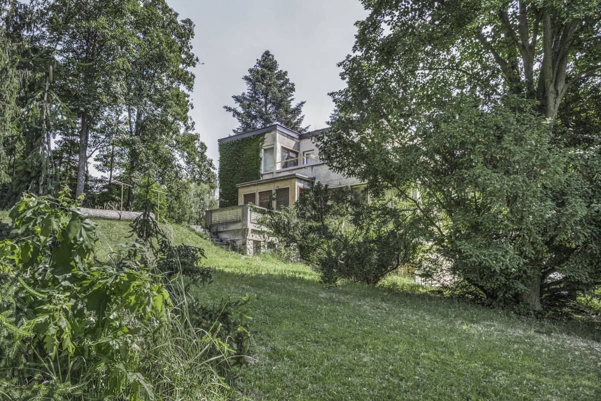 Malý, zarostlý bazén u domu je upomínkou na dobu, kdy vilu zdědil filmař Elmar Klos.