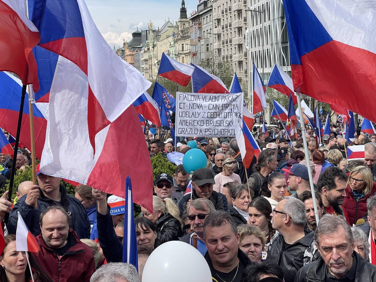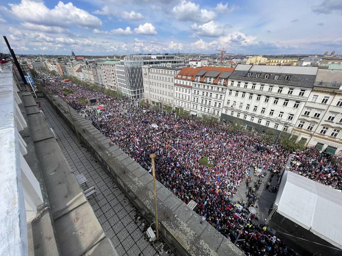 V Praze na Václavském náměstí se demonstruje proti bídě.