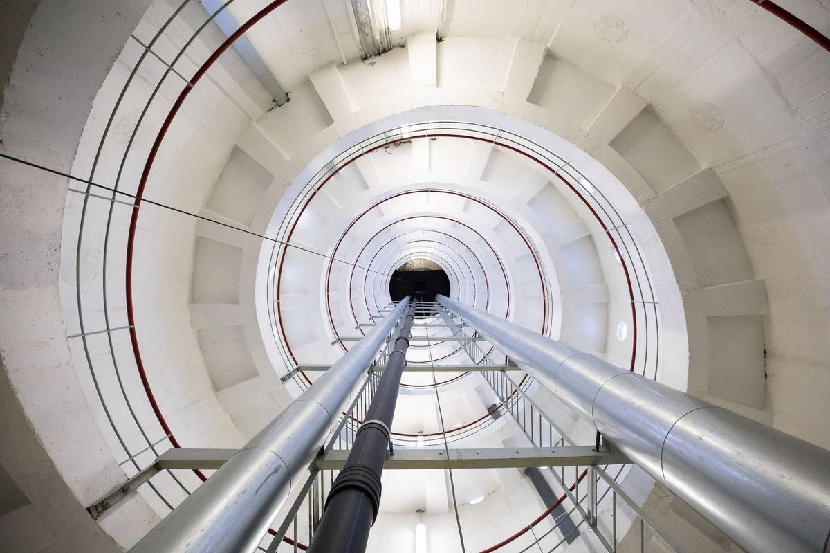 Vodojem je vysoký tak, aby se voda principem spojených nádob dostala i do nejvyššího patra věžáku.