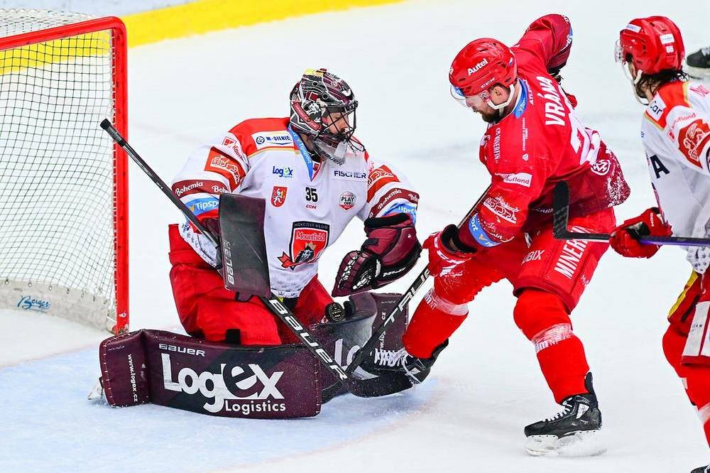 Daniel Voženílek z Třince svoji velkou šanci v první třetině nevyužil a brankáře Hradce Králové Matěje Machovského nepřekonal.