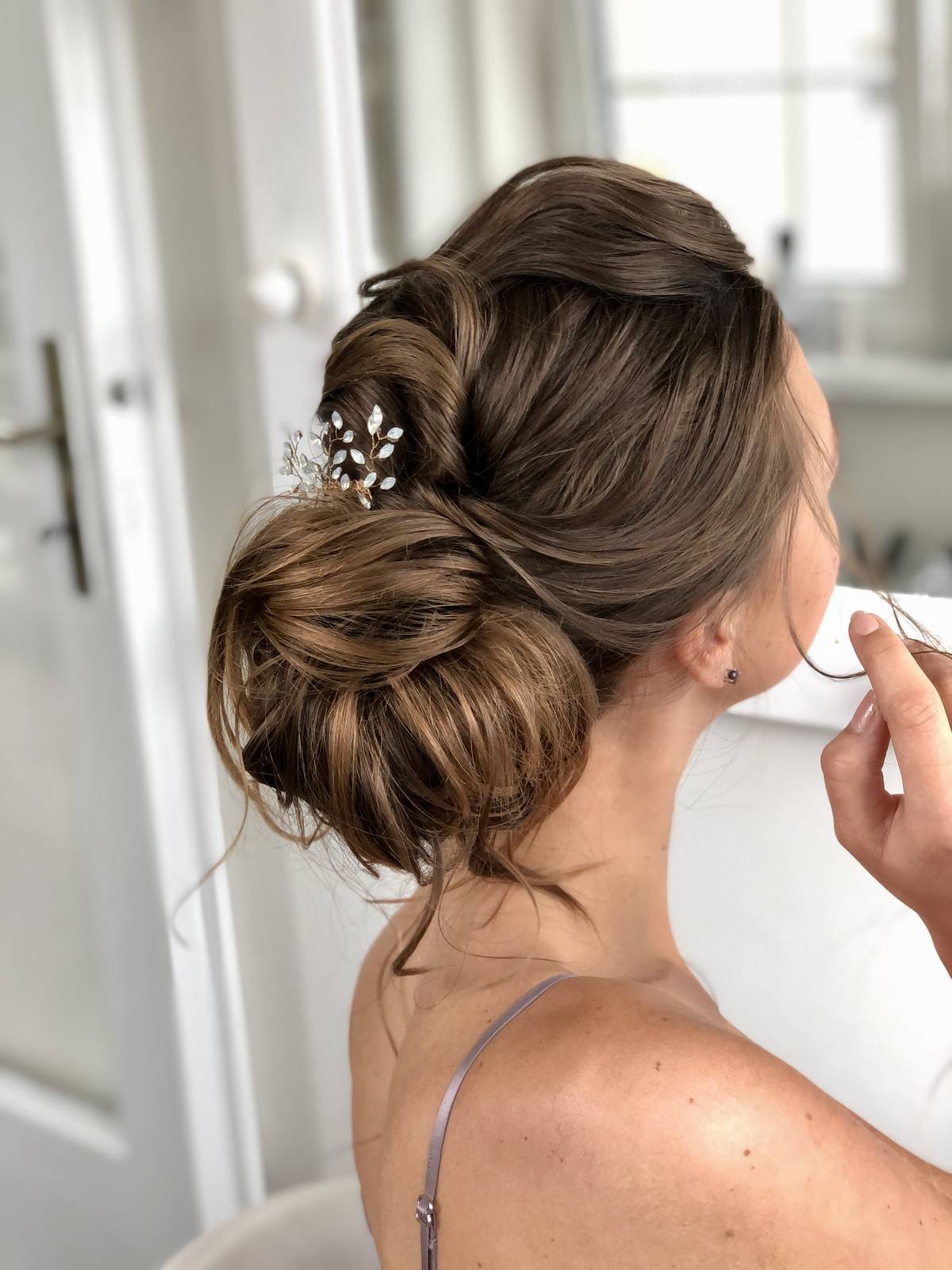 Copánek v drdolu je skvělá volba ke svatebním šatům v boho stylu.